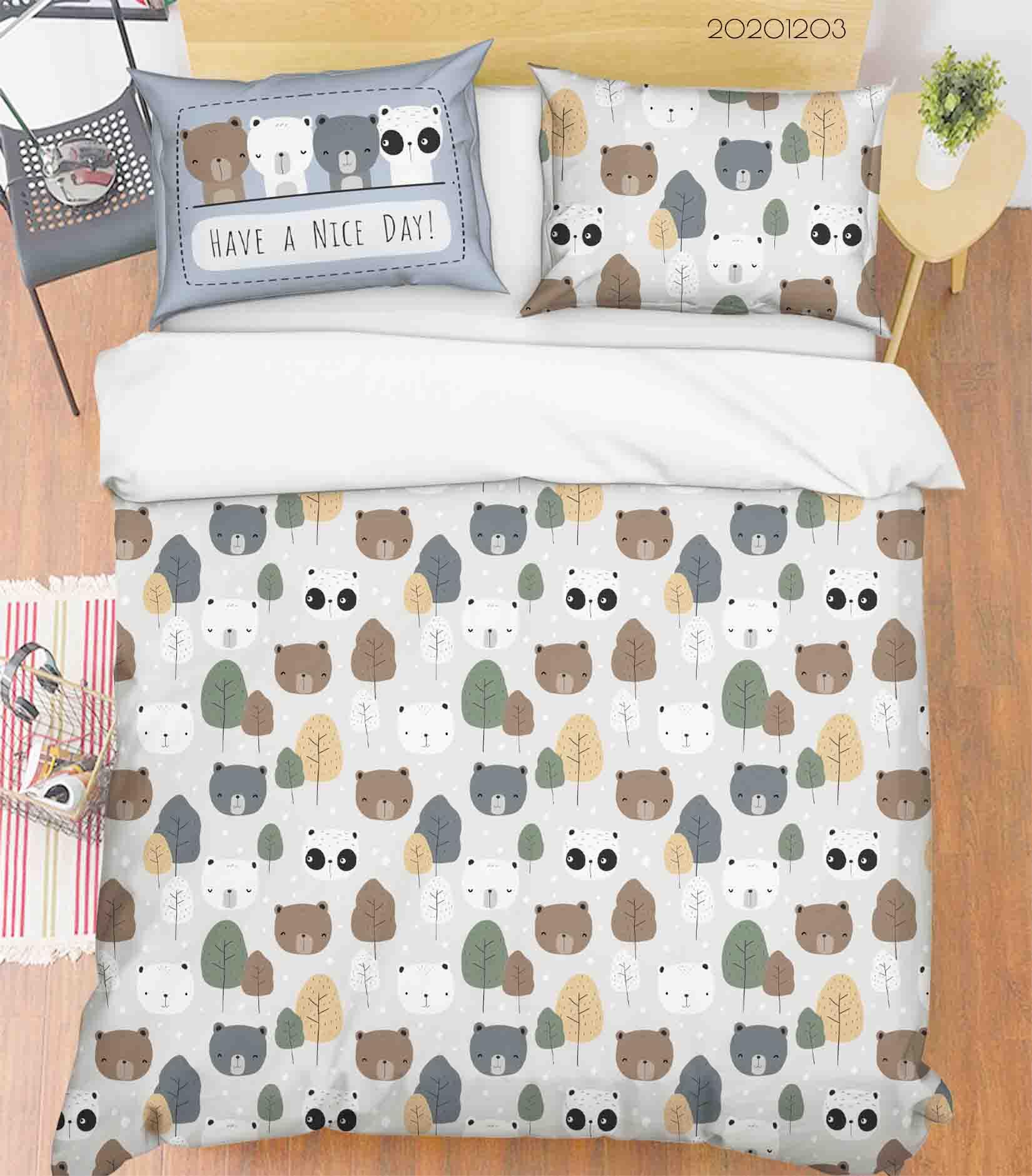 3D Cartoon Hand Drawn Cute Bear Panda Colorful Tree Plant Illustration Animal Quilt Cover Set Bedding Set Duvet Cover Pillowcases LXL