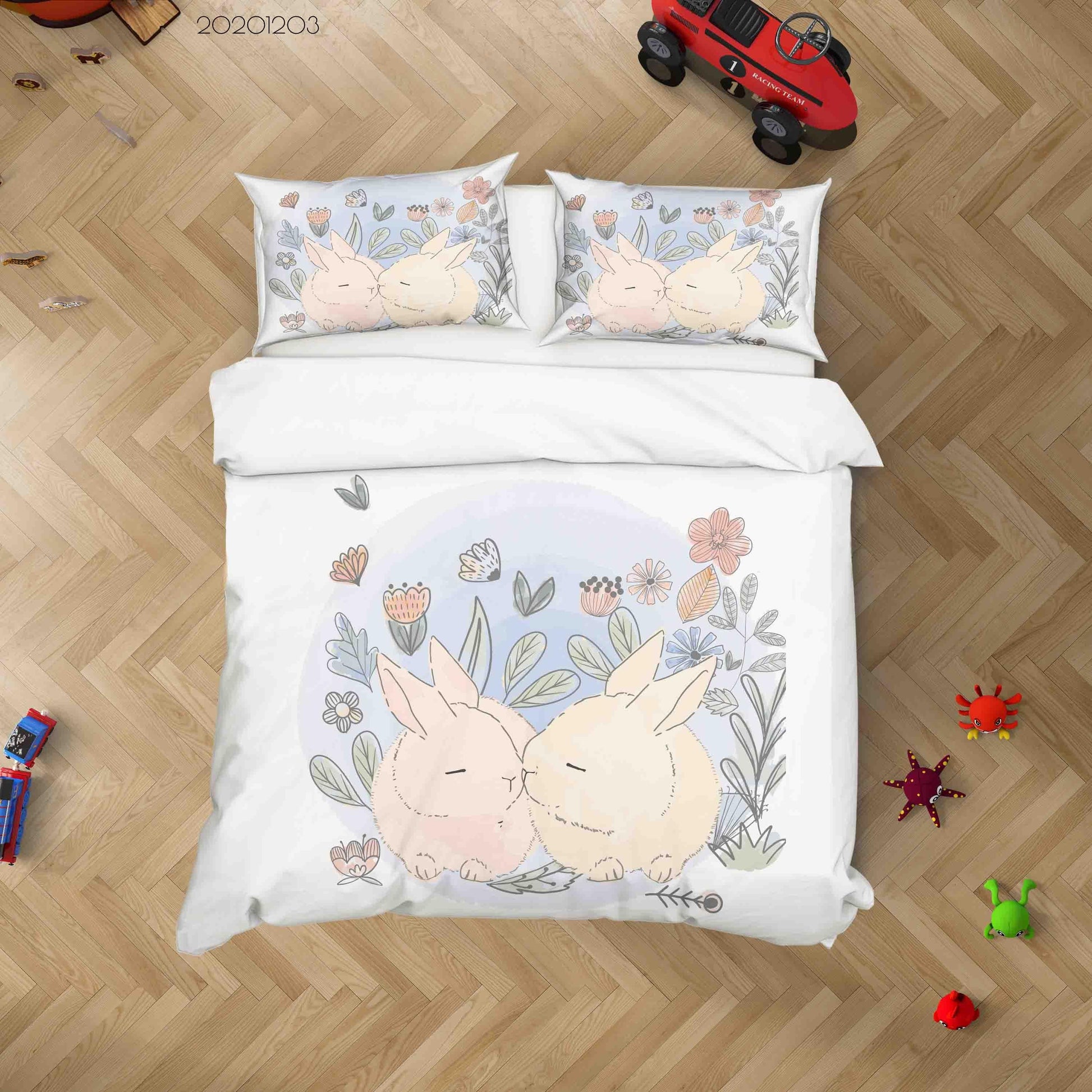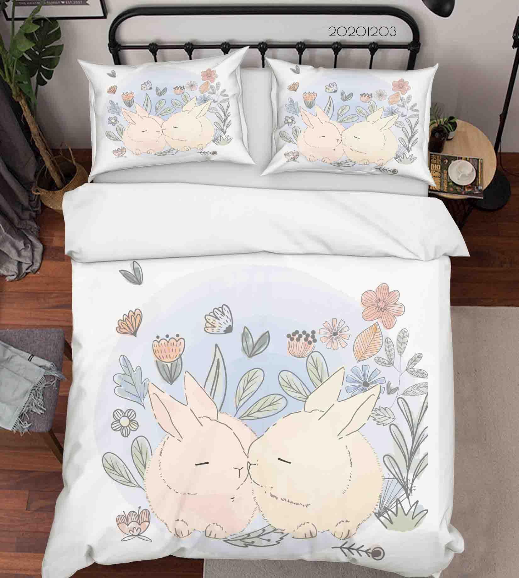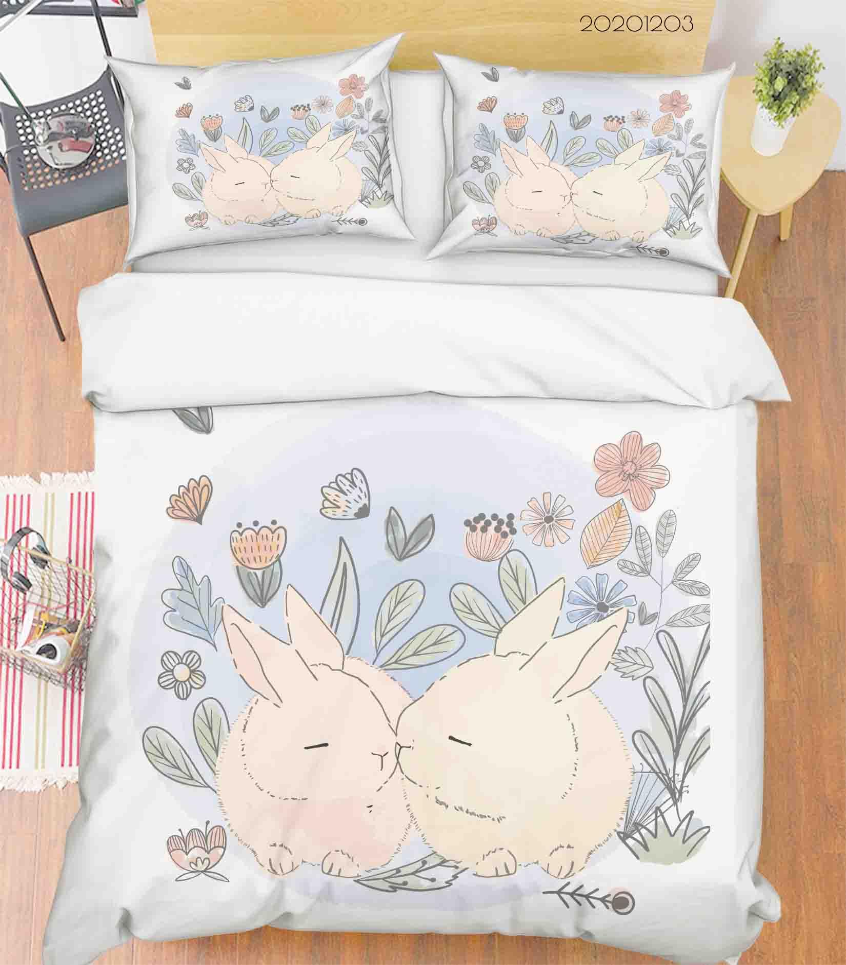 3D Cartoon Hand Drawn Floral Plant Bunny Couple Animal Quilt Cover Set Bedding Set Duvet Cover Pillowcases LXL