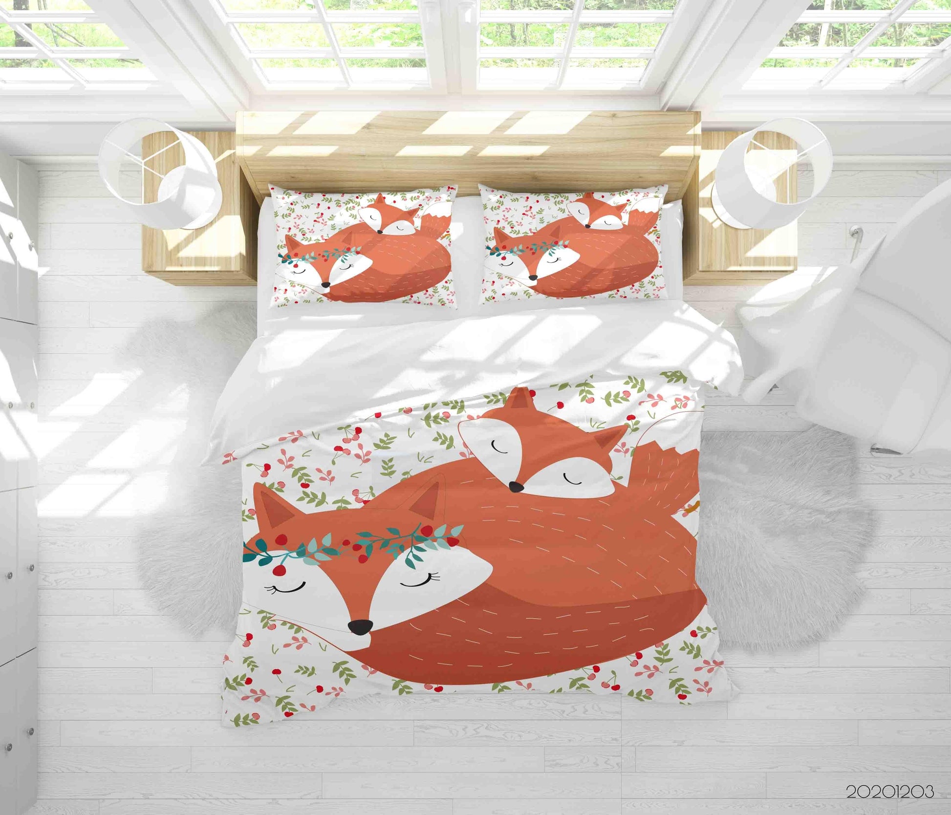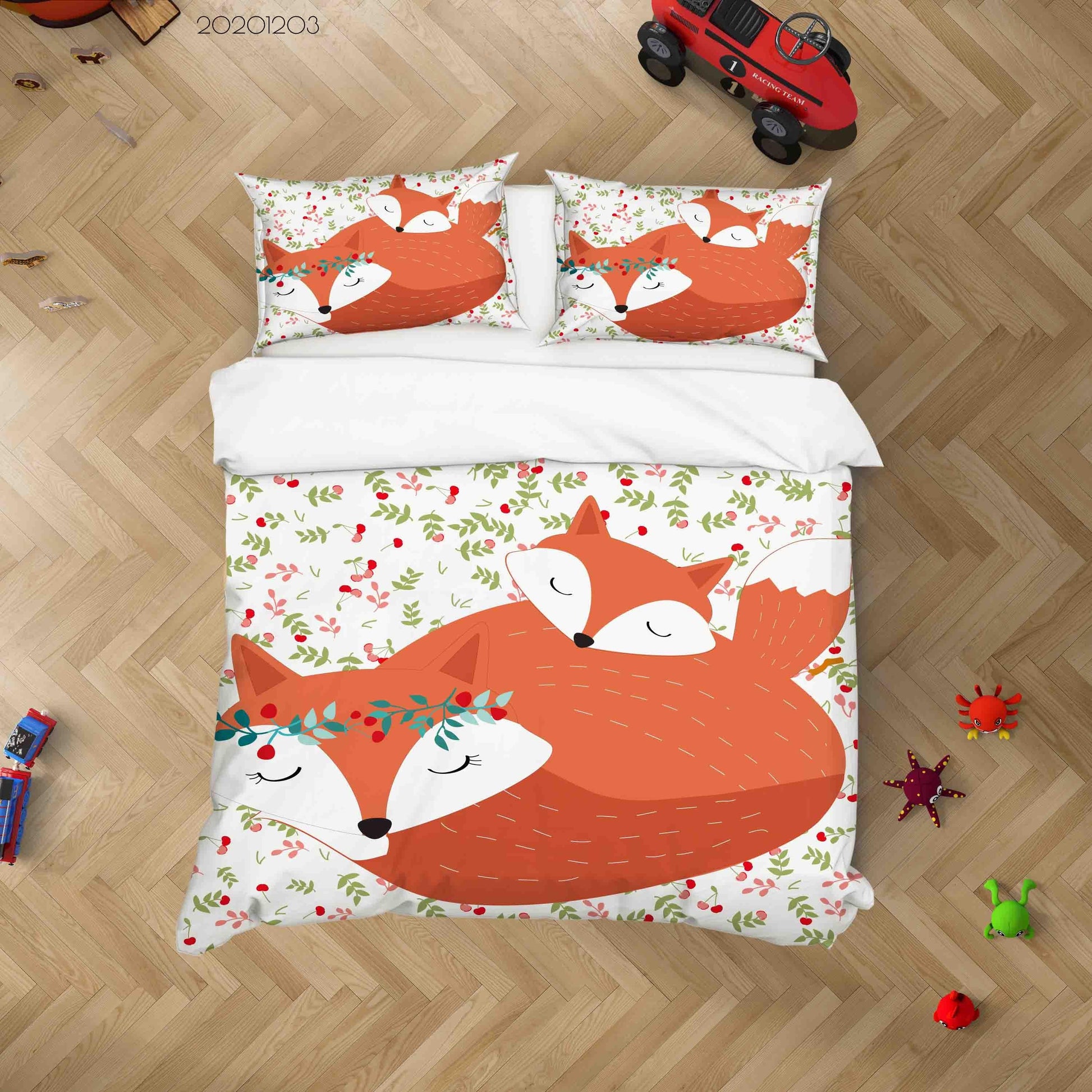 3D Cartoon Hand Drawn Floral Plant Sleeping Fox Animal Quilt Cover Set Bedding Set Duvet Cover Pillowcases LXL