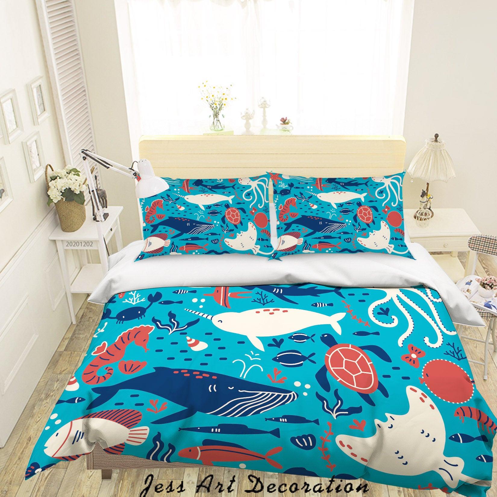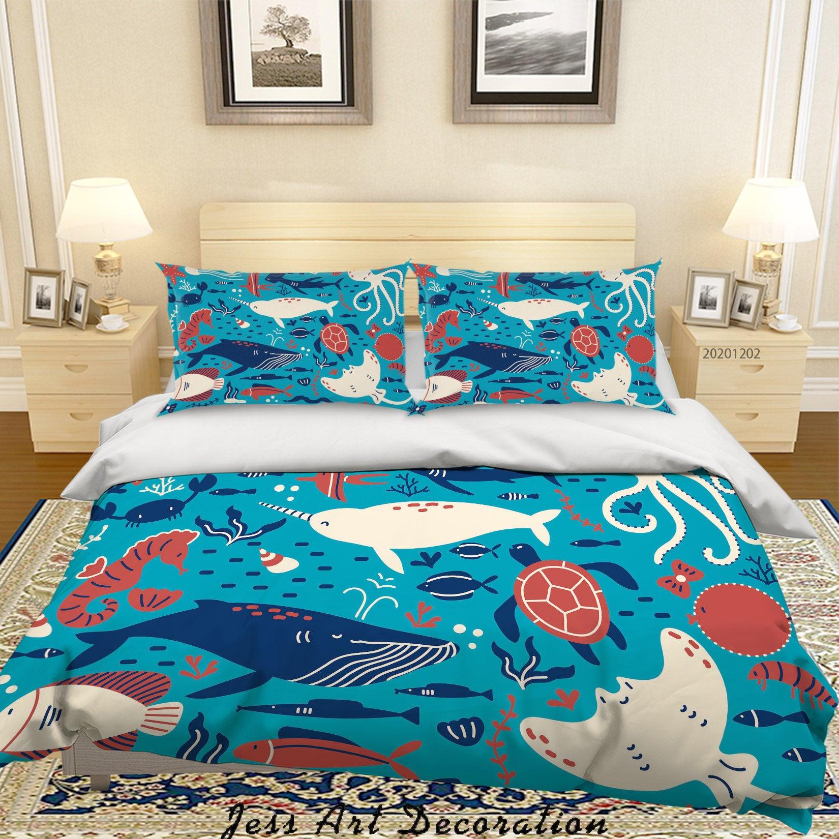 3D Cartoon Hand Drawn Ocean Colorful Octopus Sea Turtle Whale Fish Quilt Cover Set Bedding Set Duvet Cover Pillowcases LXL