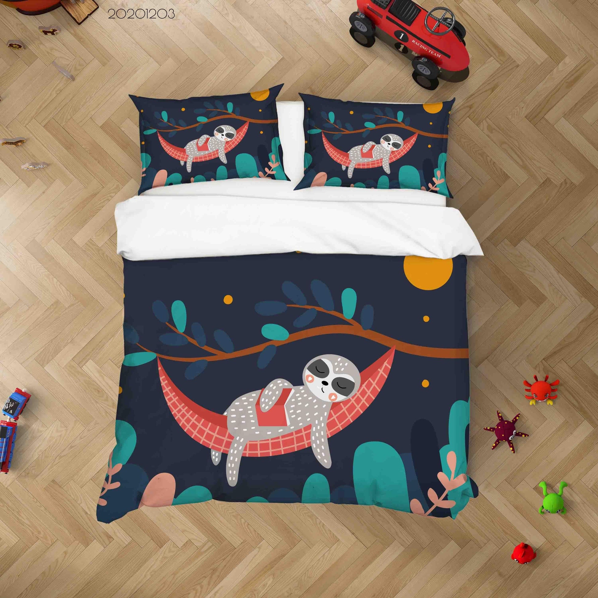 3D Cartoon Hand Drawn Sleeping Sloth Animal Moon Tree Quilt Cover Set Bedding Set Duvet Cover Pillowcases LXL