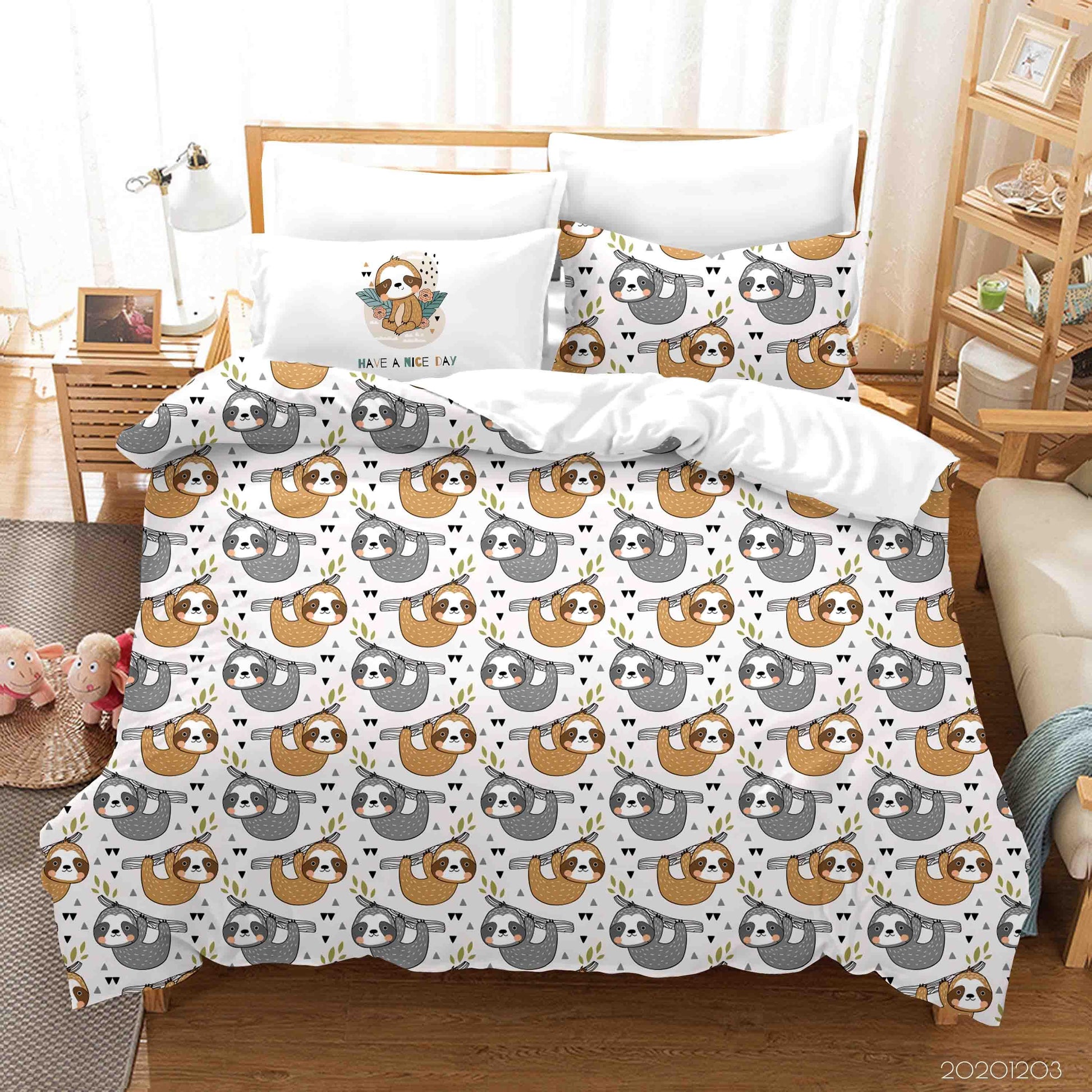 3D Cartoon Hand Drawn Sloth Animal Pattern Quilt Cover Set Bedding Set Duvet Cover Pillowcases LXL