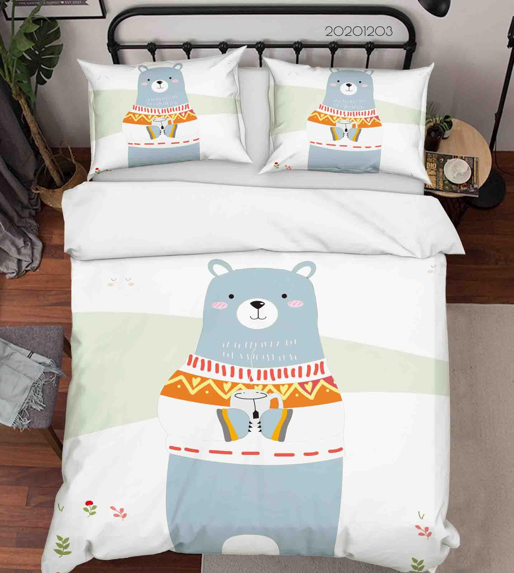 3D Cartoon Hand Drawn Sweater Blue Bear Animal Quilt Cover Set Bedding Set Duvet Cover Pillowcases LXL