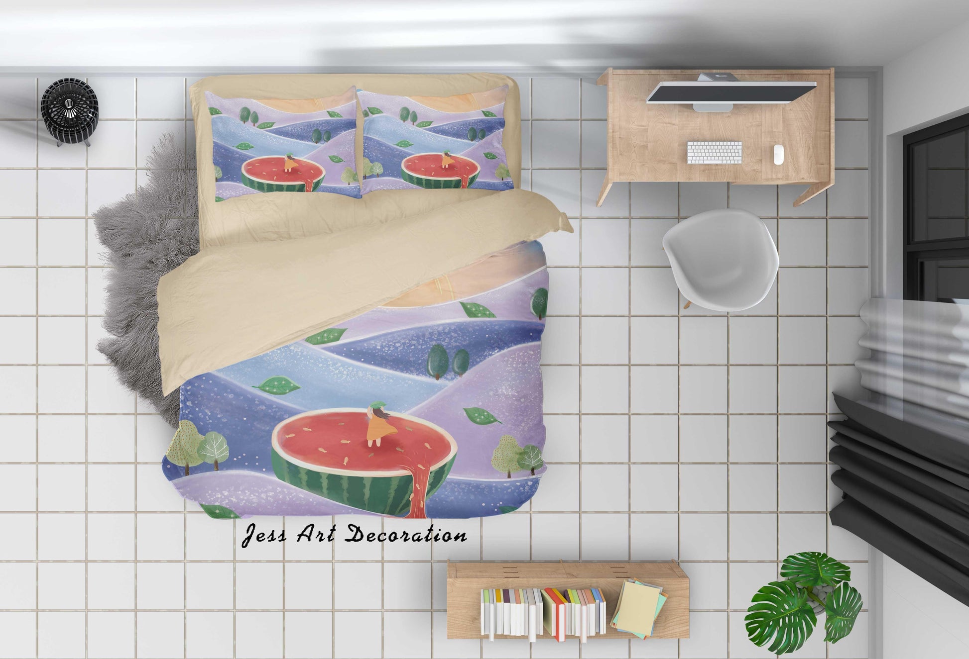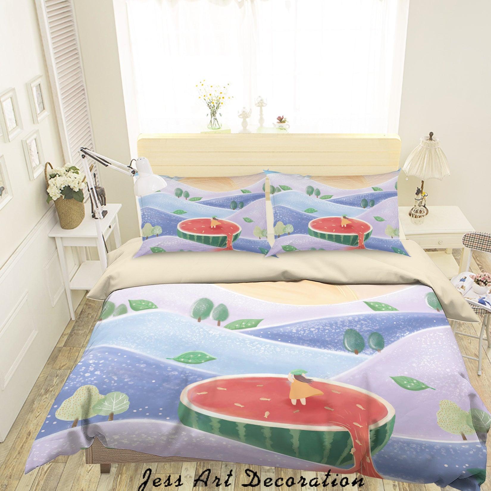 3D Cartoon Hill Watermelon Girl Quilt Cover Set Bedding Set Duvet Cover Pillowcases A608 LQH