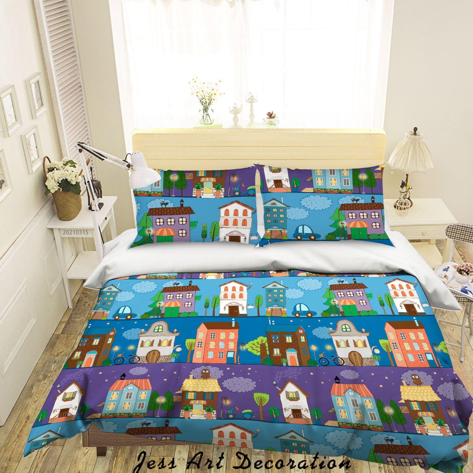 3D Cartoon House Town Quilt Cover Set Bedding Set Duvet Cover Pillowcases 54