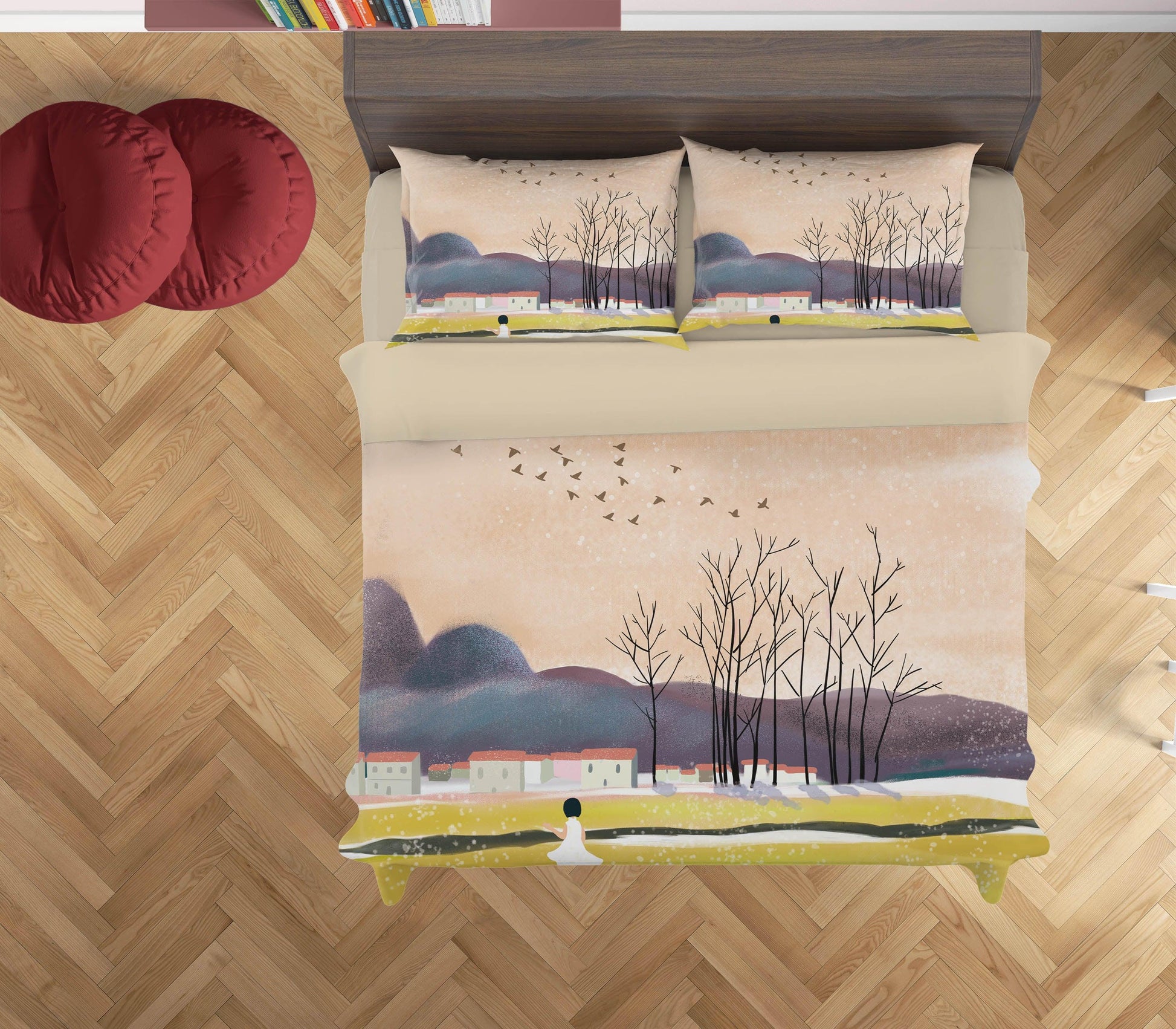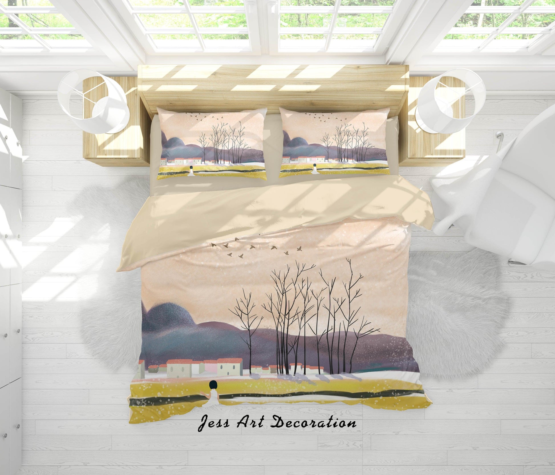 3D Cartoon House Tree Mountain Girl Quilt Cover Set Bedding Set Duvet Cover Pillowcases A553 LQH