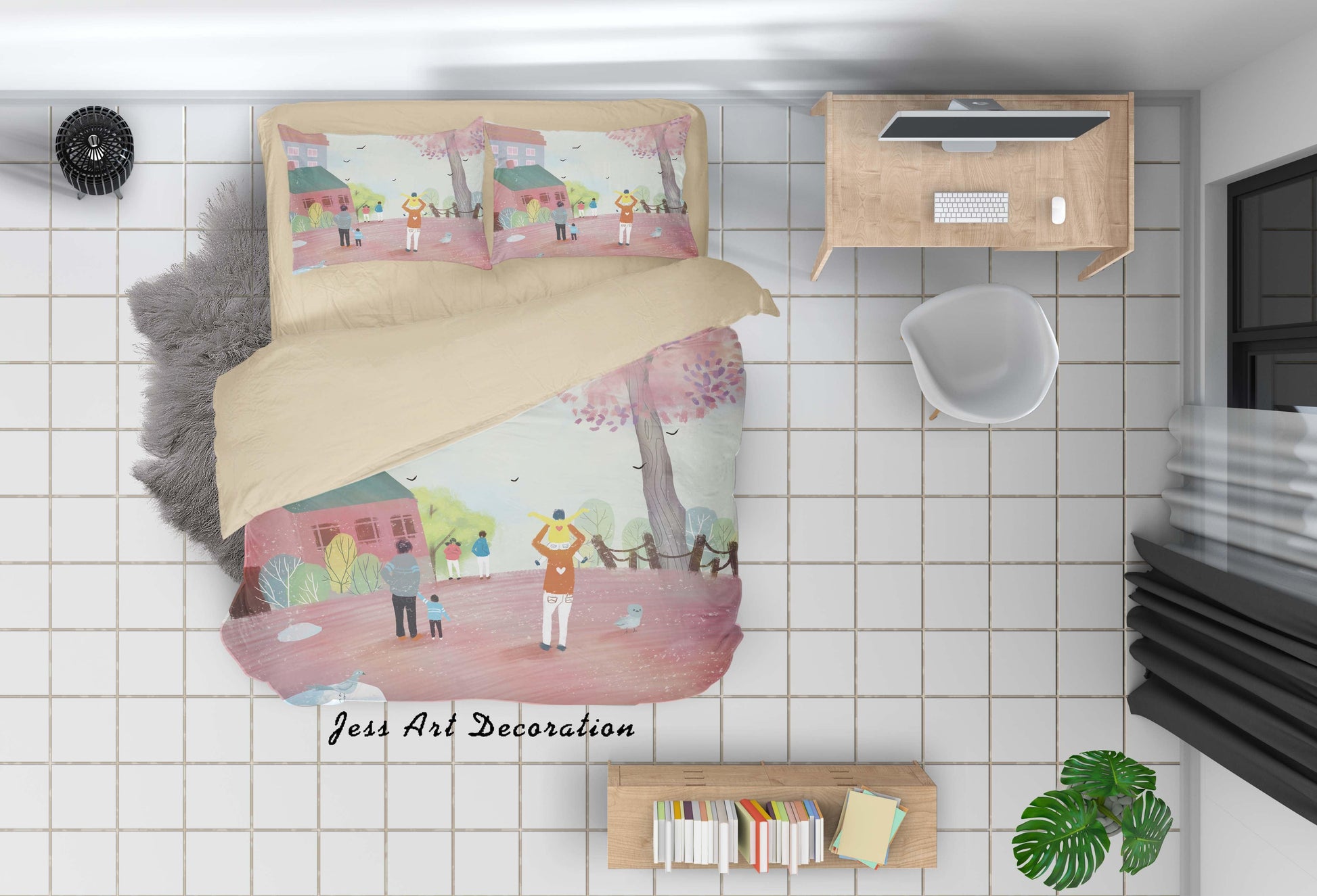 3D Cartoon House Tree Pink Quilt Cover Set Bedding Set Duvet Cover Pillowcases A619 LQH