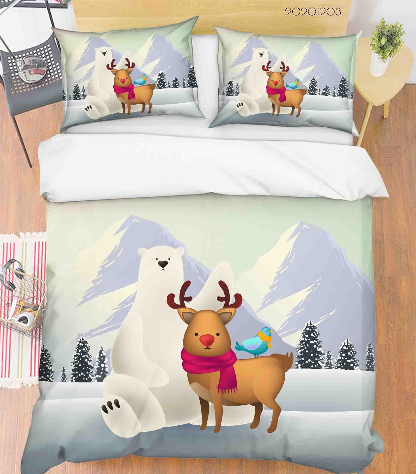 3D Cartoon Ice Mountain Fir Plant Polar Bear Reindeer Animal Quilt Cover Set Bedding Set Duvet Cover Pillowcases LXL