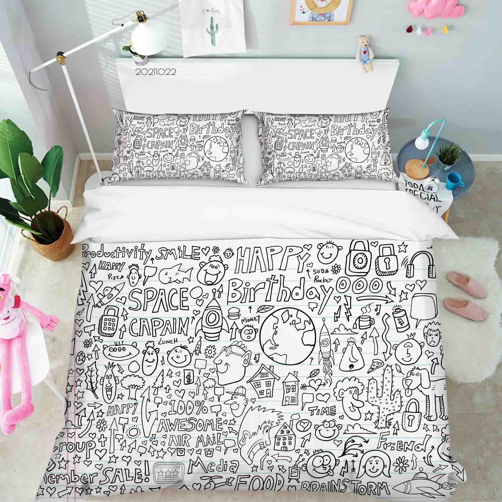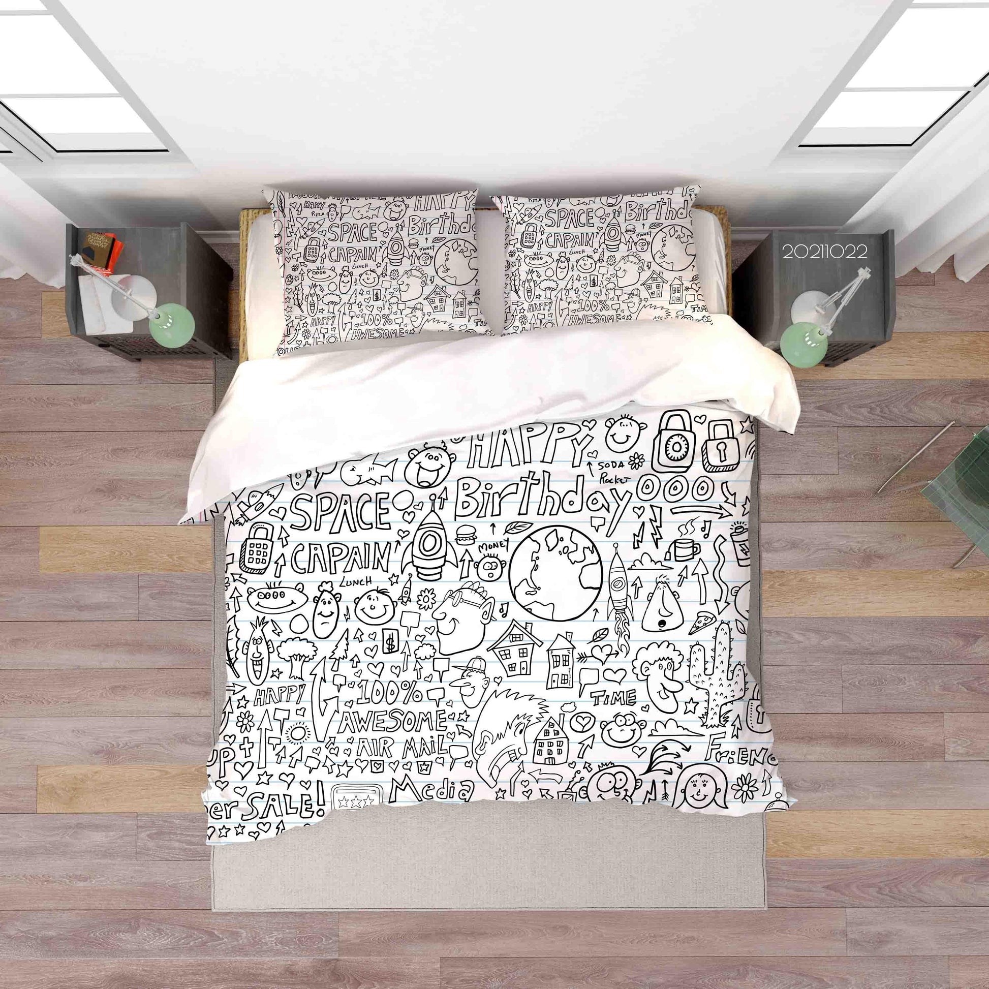 3D Cartoon Illustration Doodle Quilt Cover Set Bedding Set Duvet Cover Pillowcases 70