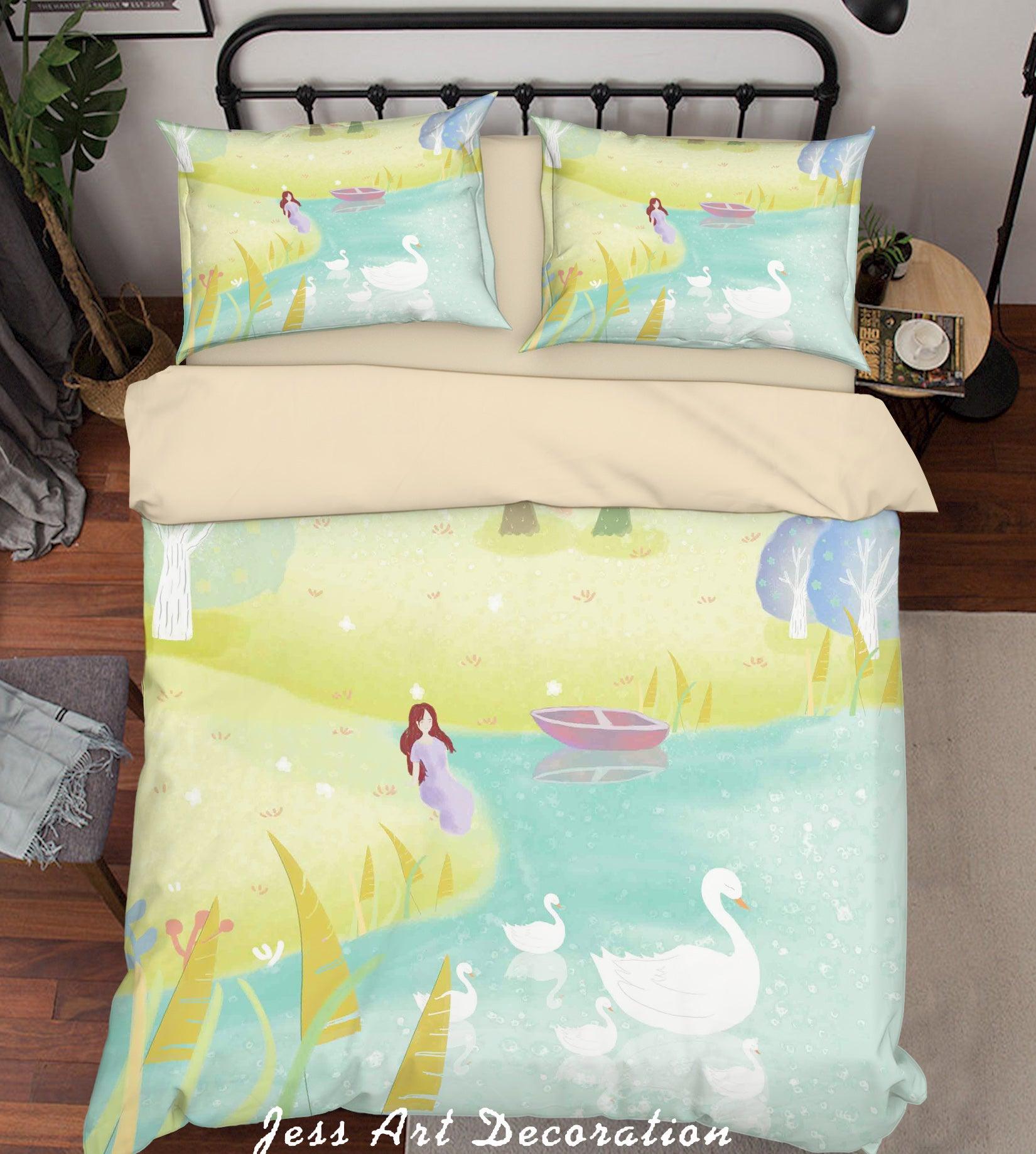 3D Cartoon Lake Goose Girl Quilt Cover Set Bedding Set Duvet Cover Pillowcases A606 LQH