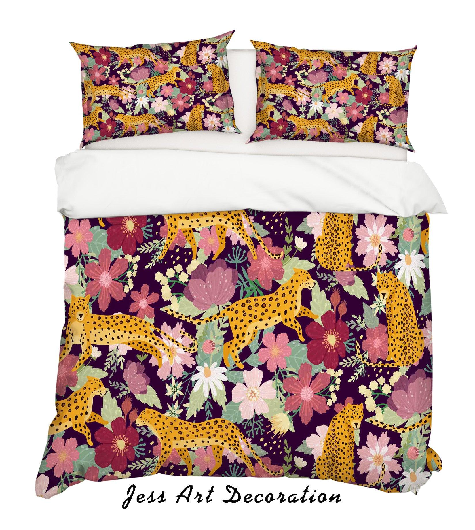 3D Cartoon Leopard Flower Quilt Cover Set Bedding Set Pillowcases 95