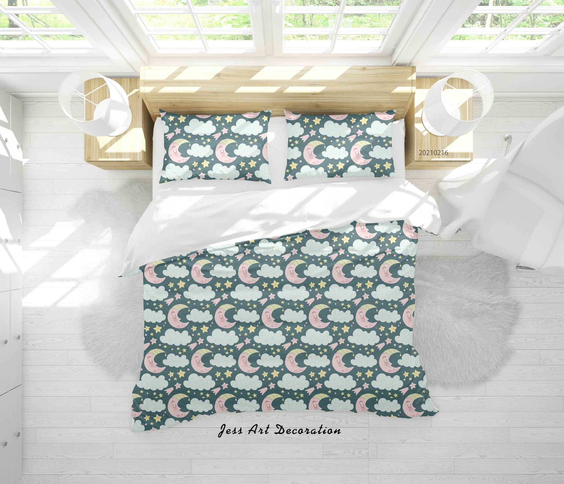 3D Cartoon Moon Cloud Quilt Cover Set Bedding Set Duvet Cover Pillowcases 282