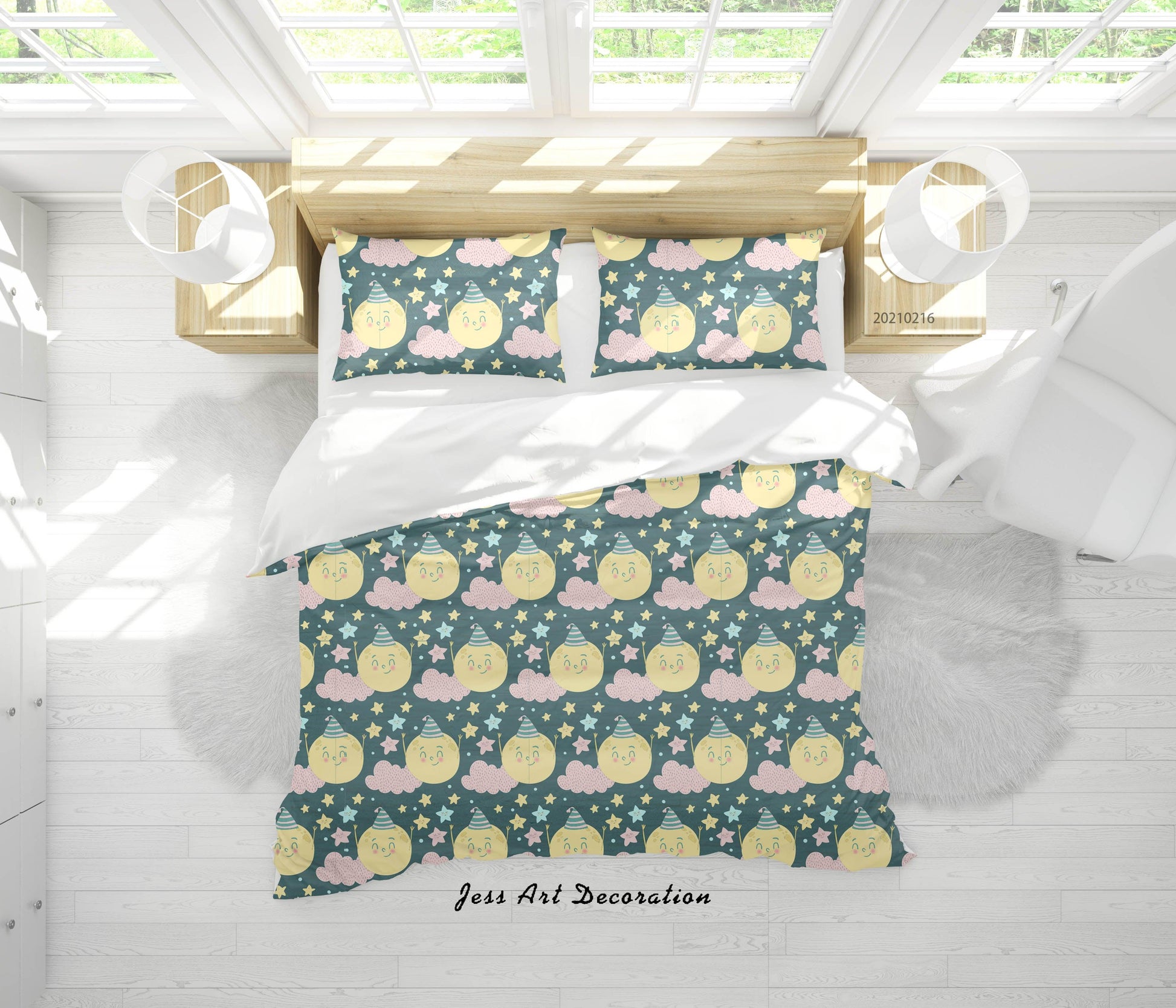 3D Cartoon Moon Cloud Star Quilt Cover Set Bedding Set Duvet Cover Pillowcases 283
