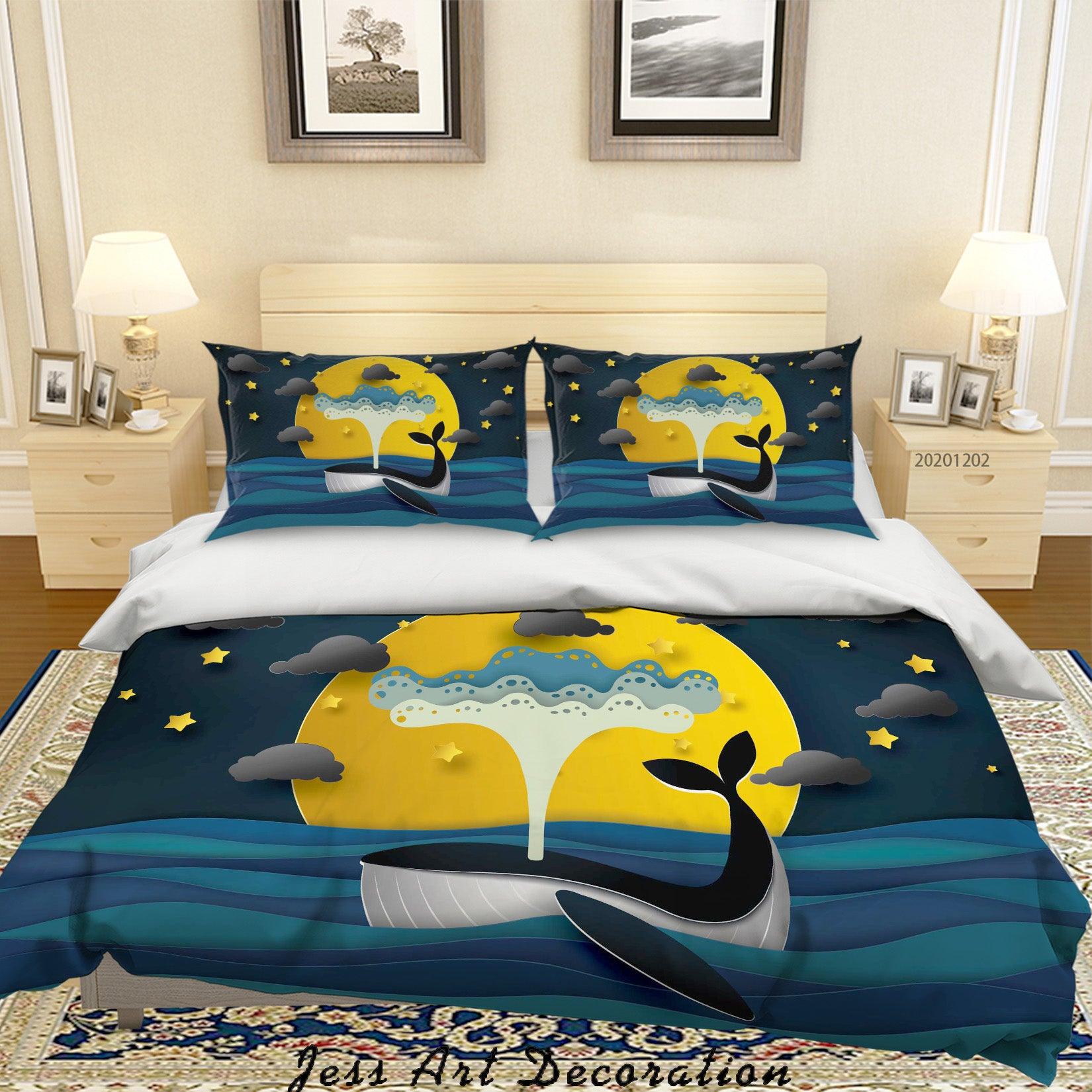3D Cartoon Night Full Moon Star Cloud Ocean Whale Quilt Cover Set Bedding Set Duvet Cover Pillowcases LXL
