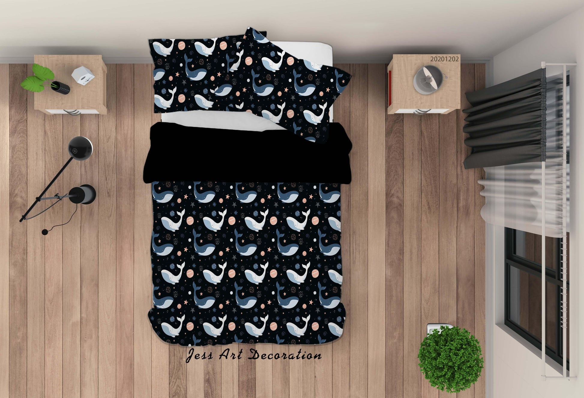 3D Cartoon Ocean Whale Fish Pattern Dot Star Quilt Cover Set Bedding Set Duvet Cover Pillowcases LXL