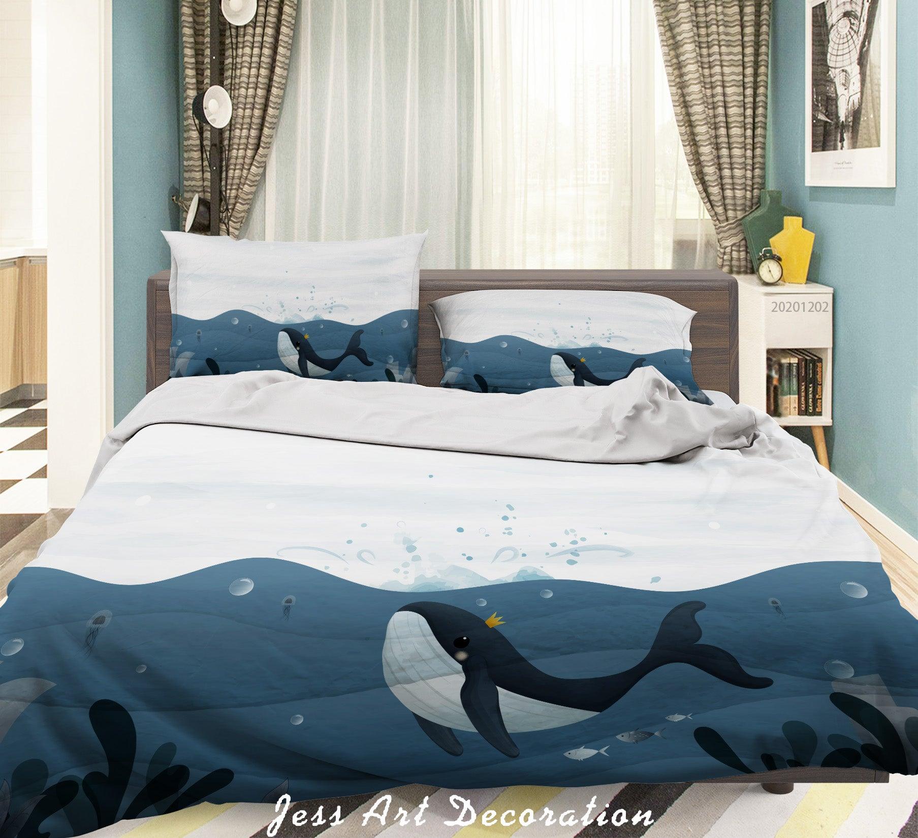 3D Cartoon Ocean Whale Fish Seaweed Quilt Cover Set Bedding Set Duvet Cover Pillowcases LXL