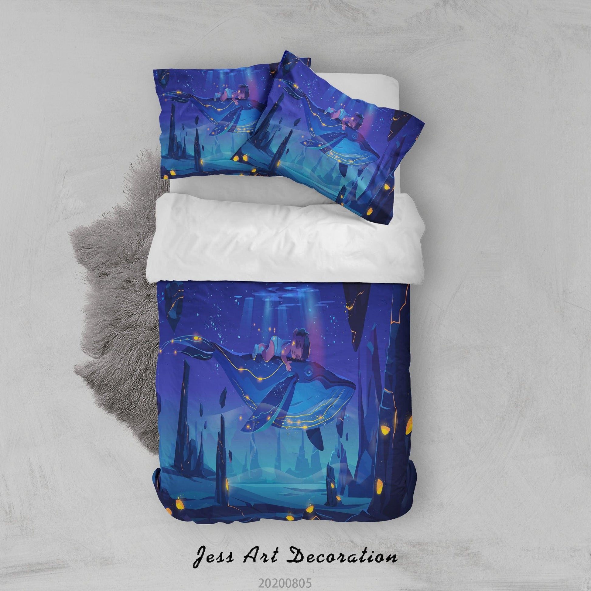 3D Cartoon Ocean Whale Sleeping Girl Quilt Cover Set Bedding Set Duvet Cover Pillowcases LXL 71