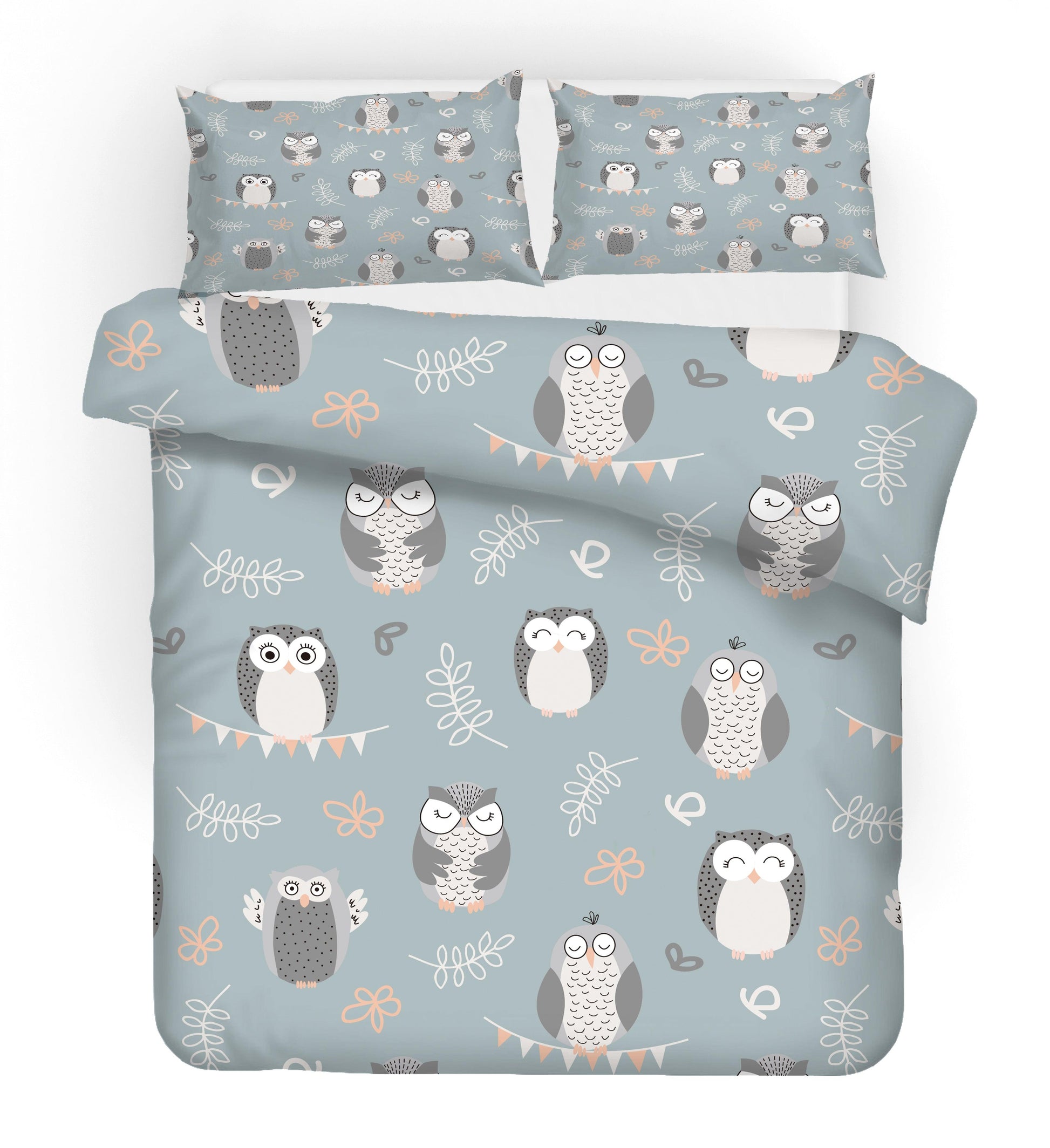 3D Cartoon Owl Floral Leaves Quilt Cover Set Bedding Set Duvet Cover Pillowcases SF77