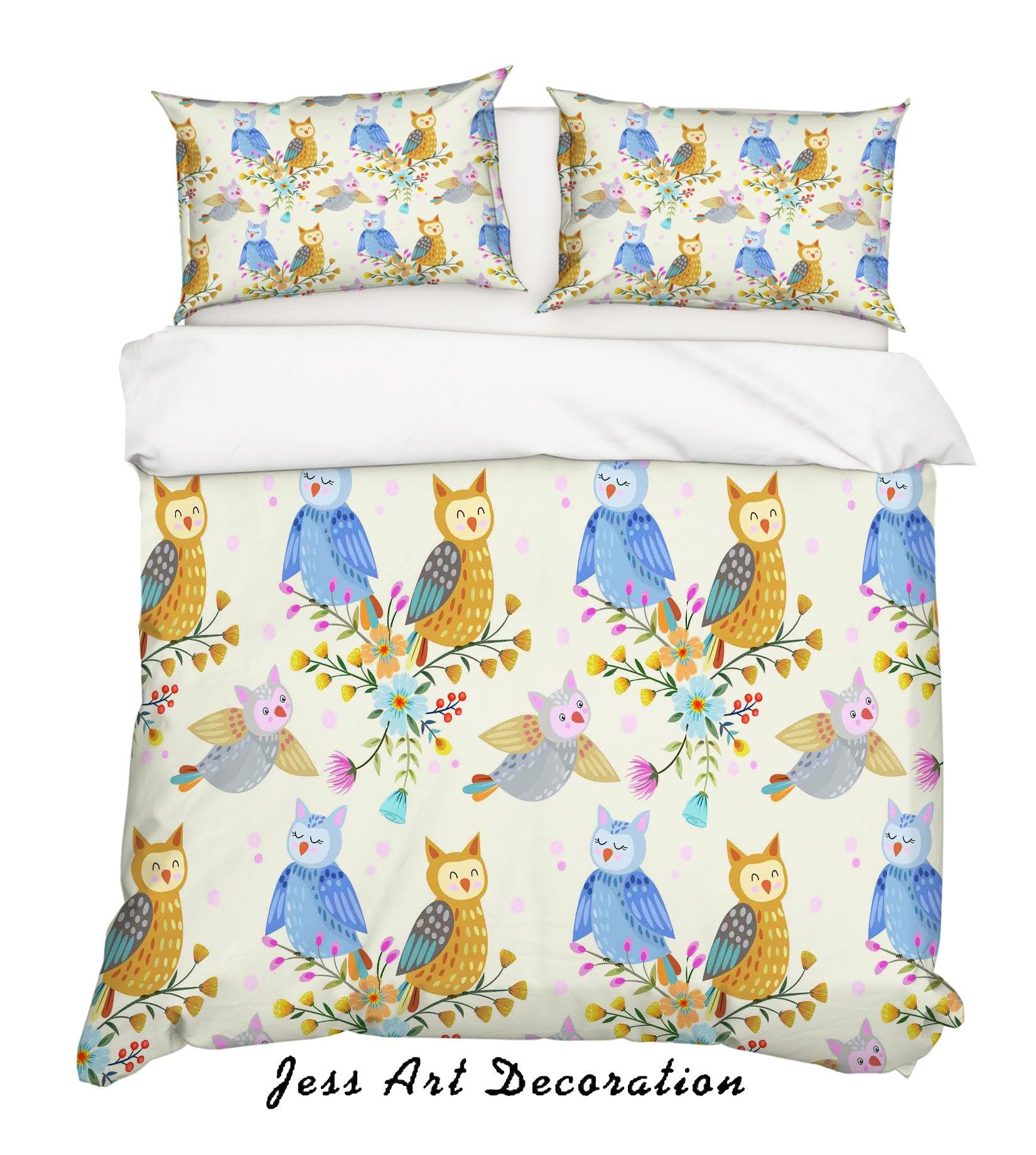 3D Cartoon Owl Leaf Quilt Cover Set Bedding Set Pillowcases 24