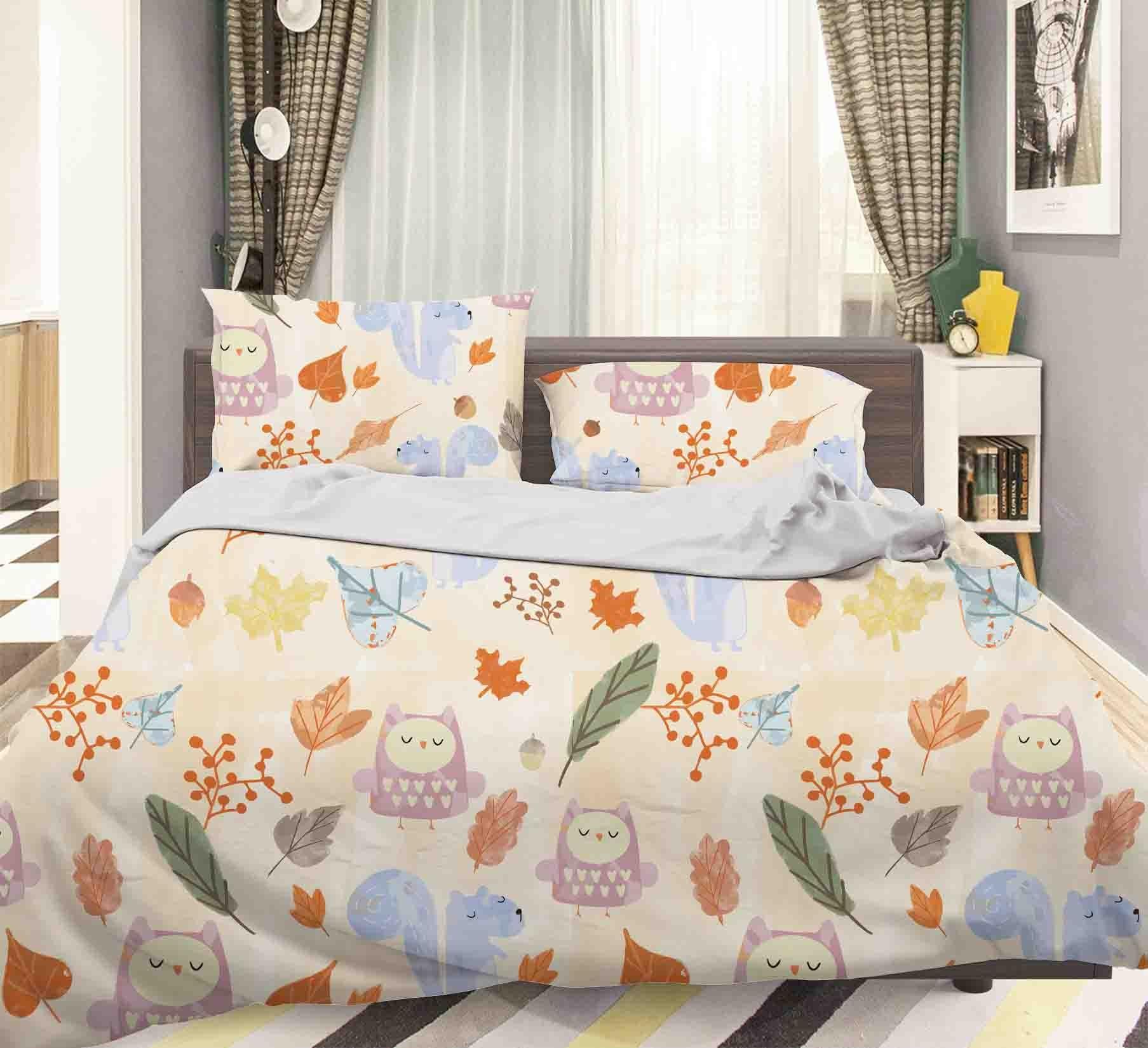 3D Cartoon Owl Leaf Quilt Cover Set Bedding Set Pillowcases 87