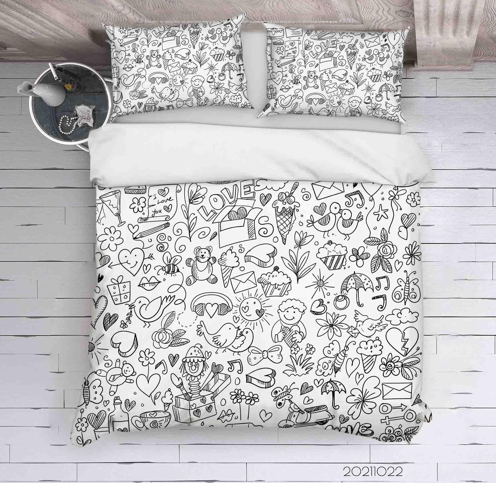 3D Cartoon Pattern Graffiti Quilt Cover Set Bedding Set Duvet Cover Pillowcases 60