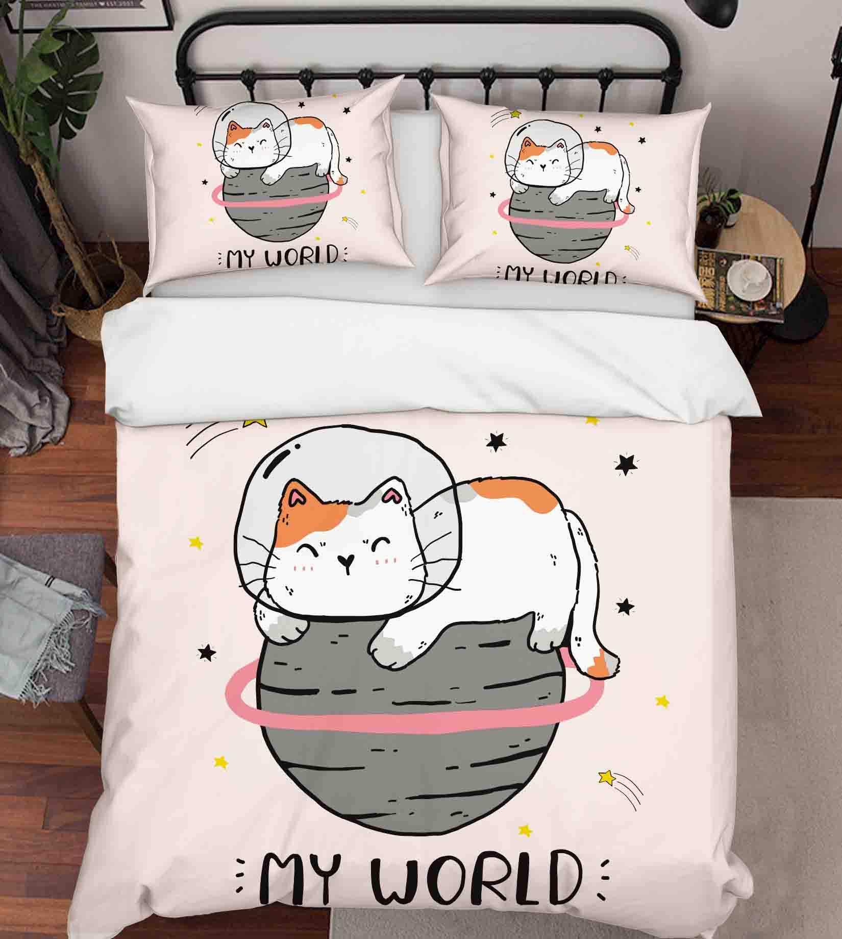 3D Cartoon Pink Animal Cat Quilt Cover Set Bedding Set Duvet Cover Pillowcases 1