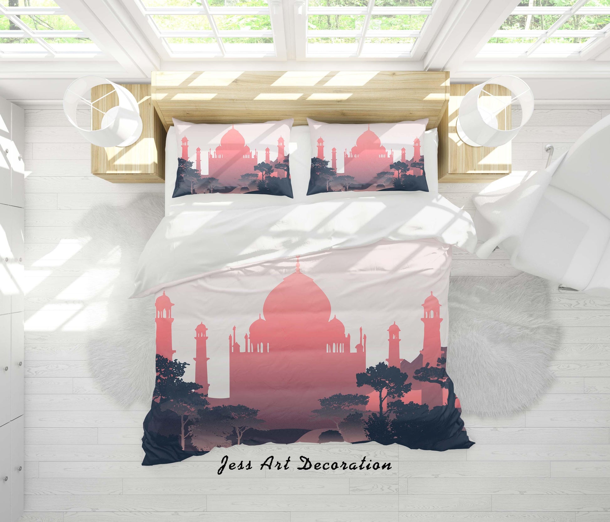 3D Cartoon Pink Castle Tree Quilt Cover Set Bedding Set Duvet Cover Pillowcases A382 LQH