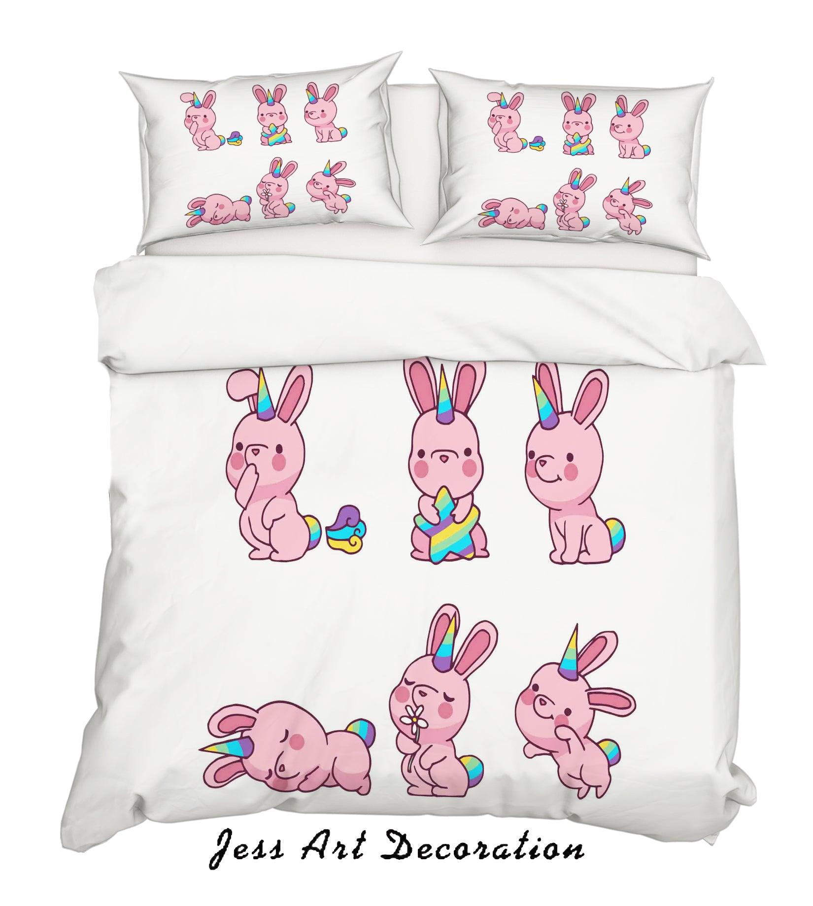 3D Cartoon Pink Rabbit Quilt Cover Set Bedding Set Pillowcases 68