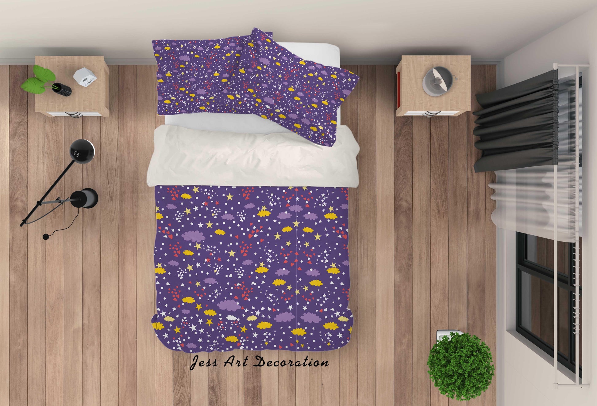 3D Cartoon Purple Cloud star Quilt Cover Set Bedding Set Pillowcases 9
