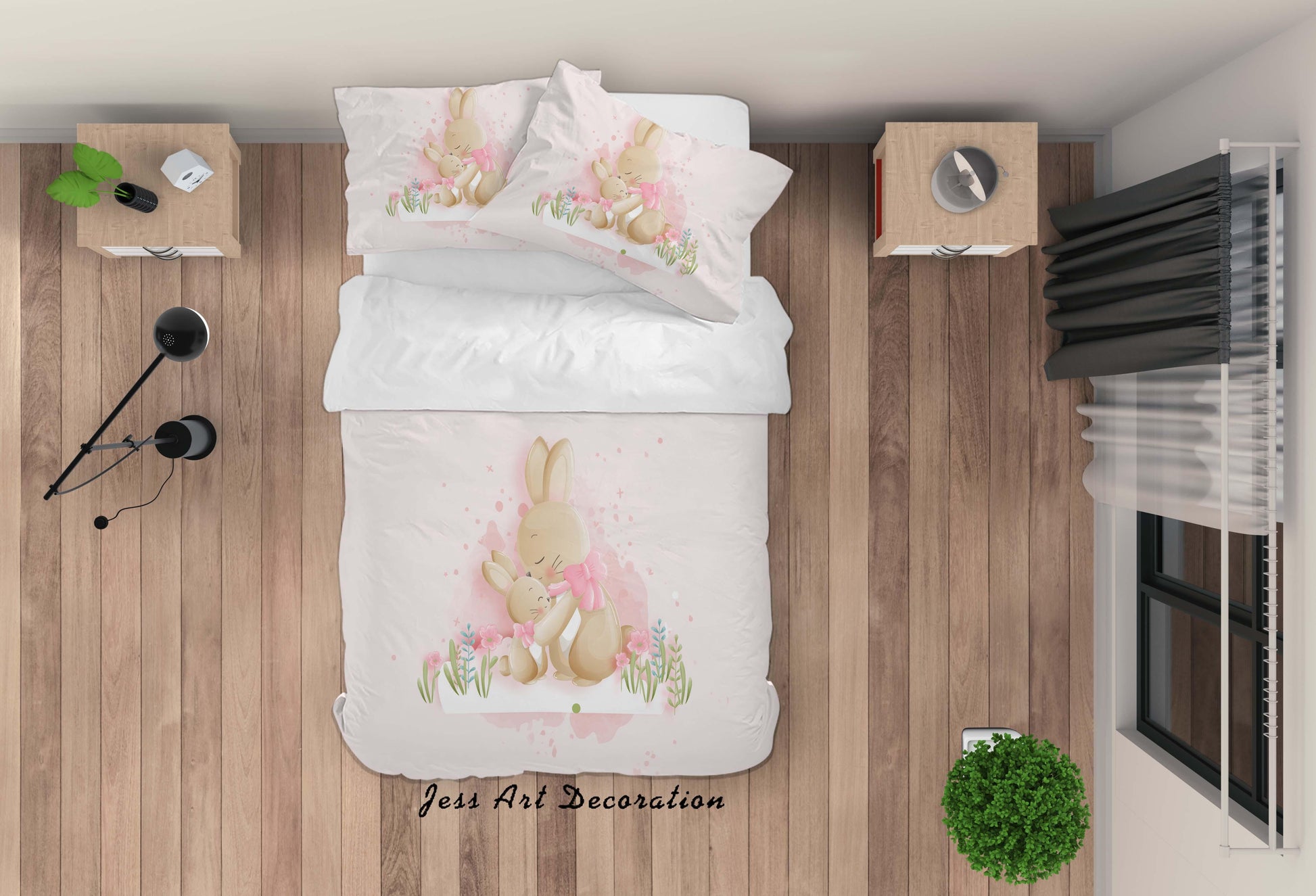 3D Cartoon Rabbit Floral Quilt Cover Set Bedding Set Duvet Cover Pillowcases SF81
