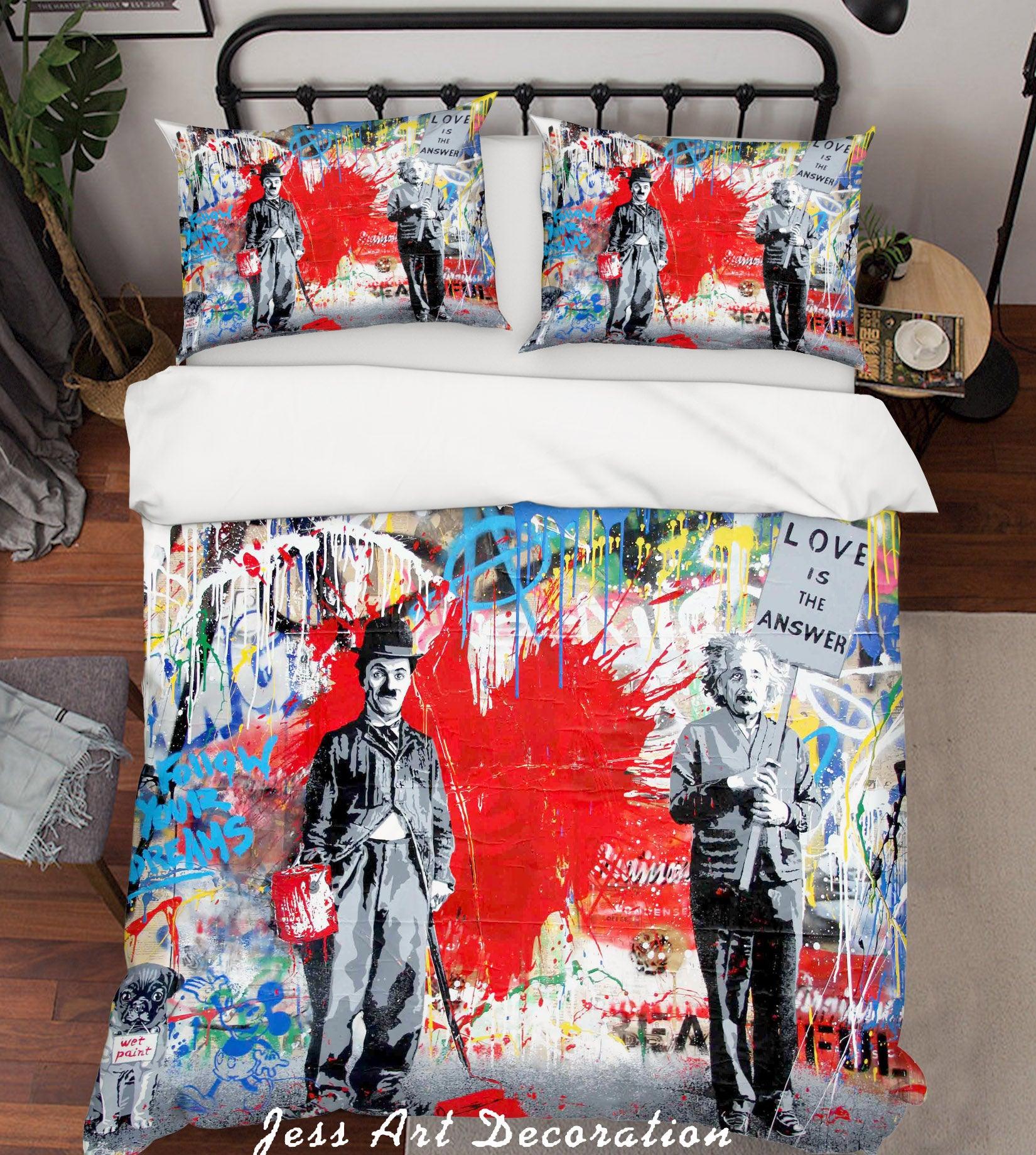 3D Juxtapose Red Heart Graffiti Quilt Cover Set Bedding Set Duvet Cover Pillowcases ZY D90