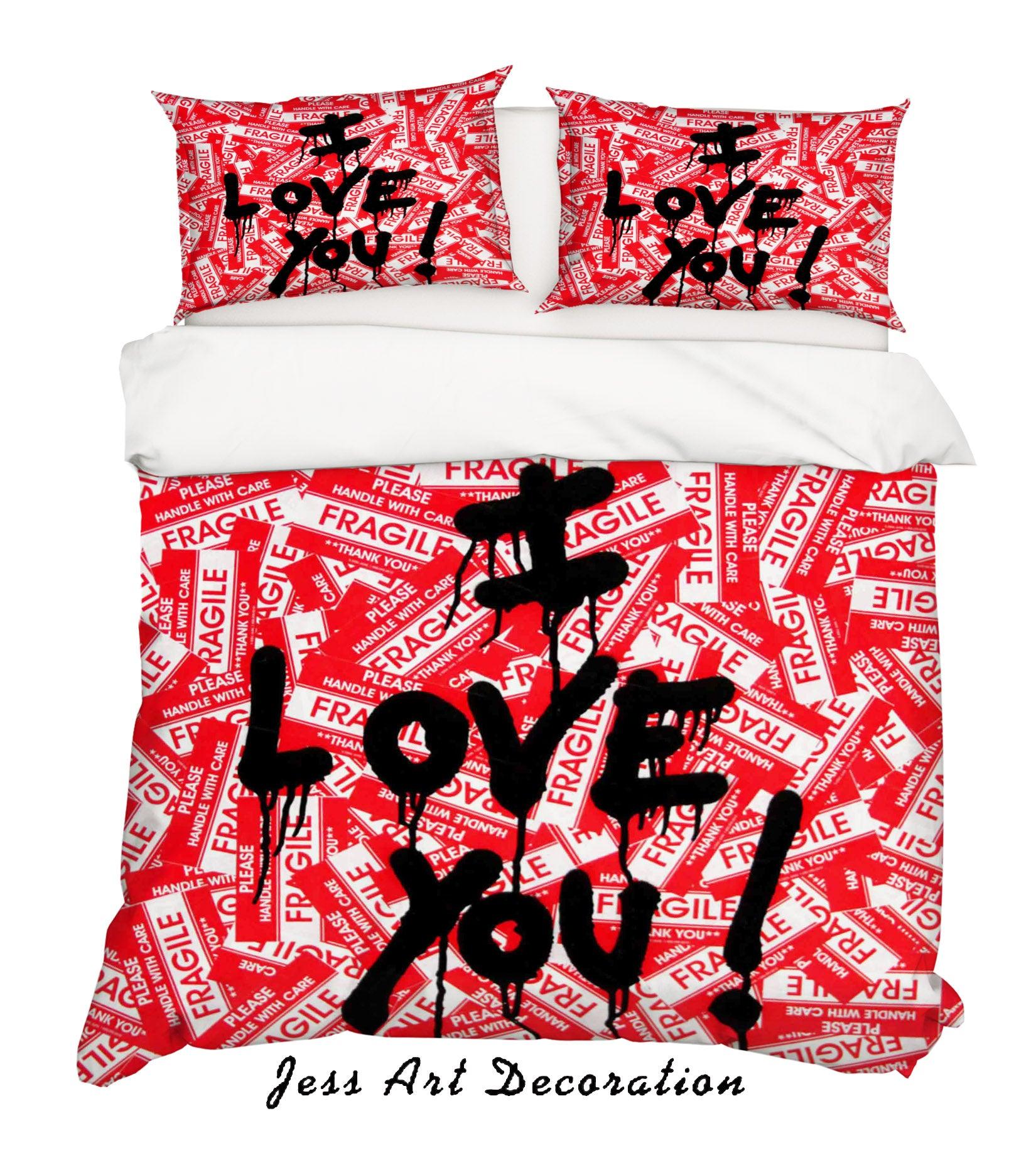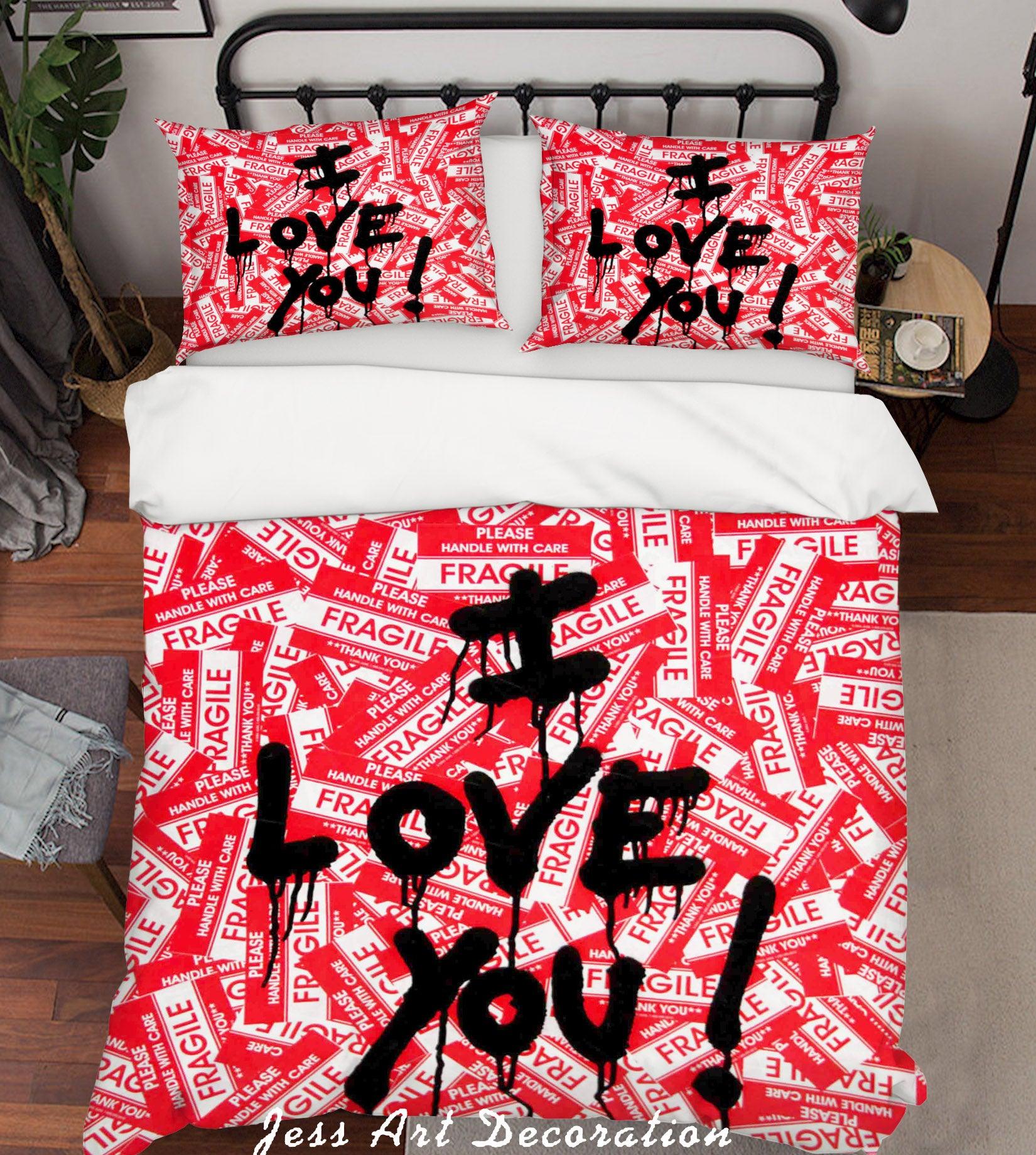 3D Red Black I Love You Letter Quilt Cover Set Bedding Set Duvet Cover Pillowcases ZY D89