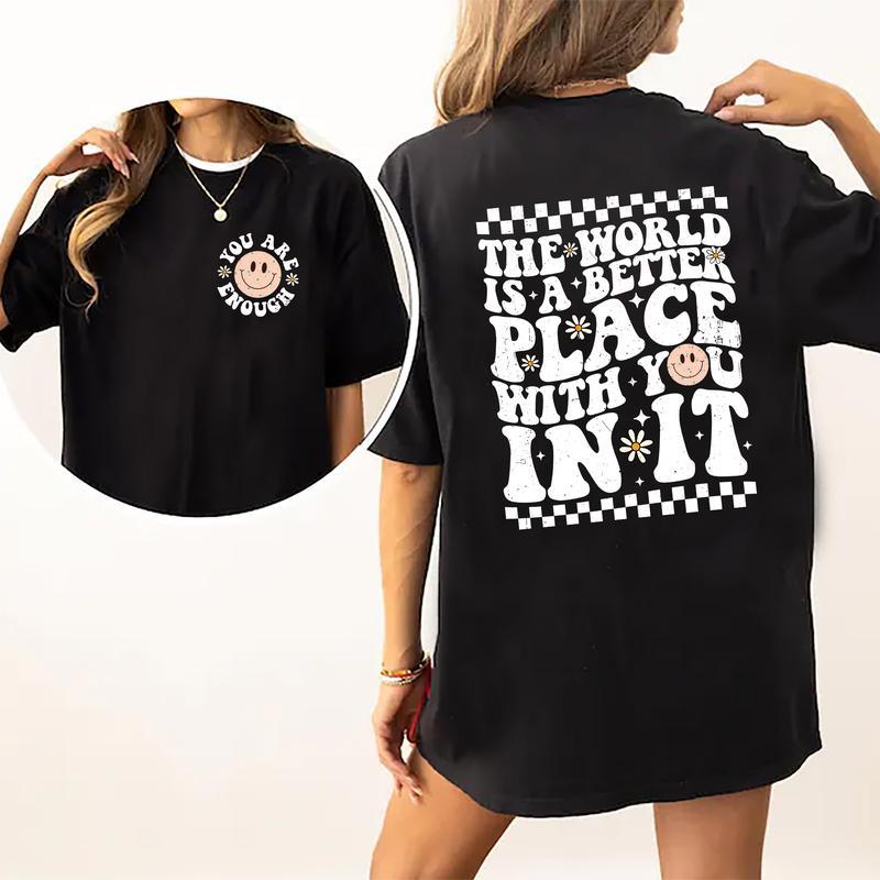 A Better Place Shirt, The World Is A Better Place With You In It Tee, Your Are Enough T-shirt, Inspirational Daisy Smiling Face Comfort Shirt, Retro G