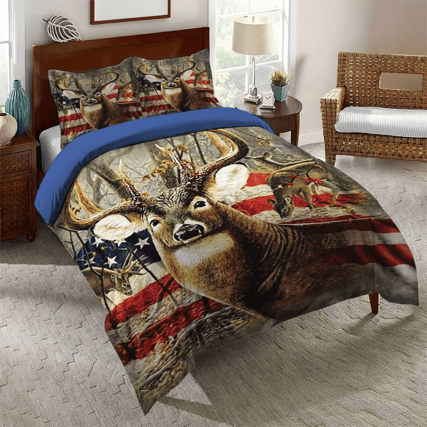 A Righteous Man Goes Hunting Queen Size Bedding Set, Deer Soft Duvet Cover Set, Deer Hunting Bedding Set, Gifts for Hunting