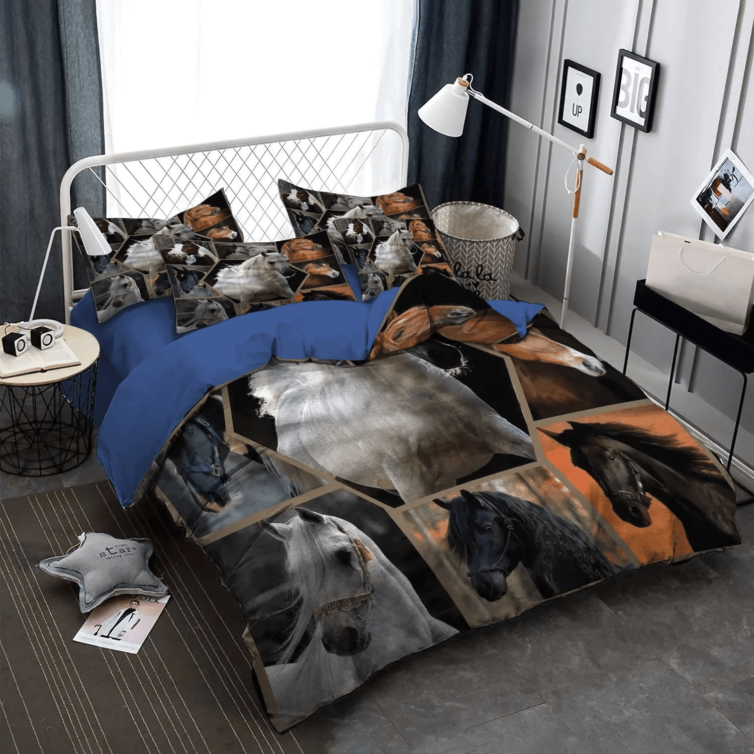 Abstract Horse Bedding set, Galloping Horse Soft Duvet Cover Set, Horse Queen Size Bedding Set, Horse Bedding Set, Gifts for Horse