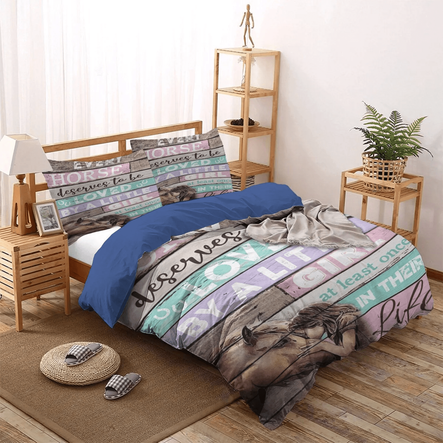 Abstract Horse Soft Duvet Cover Set, Horse Queen Size Bedding Set, Horse Loved By Little Girl Bedding Set, Gifts for Horse