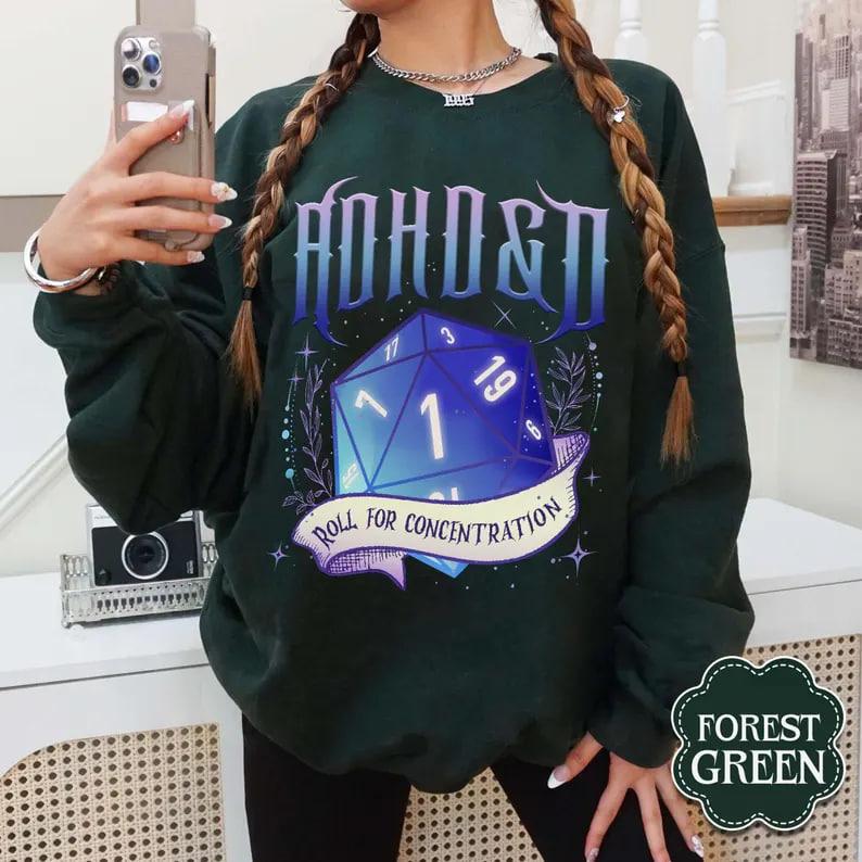 Adhd&d Roll for Concentration Sweatshirt, Dungeons and Dragons Shirt, Adhd Dnd Shirt, D20 Dice Tshirt, Dnd Fan, Gifts for Gamer