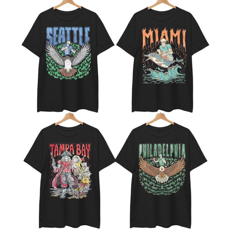 All Team Football Black T-shirt, Retro Skeleton All Teams Football Shirt, Gildan 5000 Unisex Crewneck Sport Classic Shirt, Vintage Graphic Tees, Footb