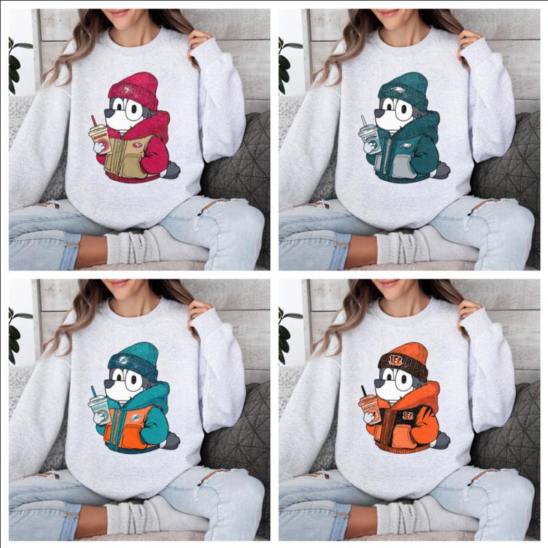 All Team Football Blu ey Sport Grey Color Sweatshirt, Crewneck All Team Trendy Sweatshirt, Fan Gift, Game Day Shirt, Football Jersey, Gift for Footbal