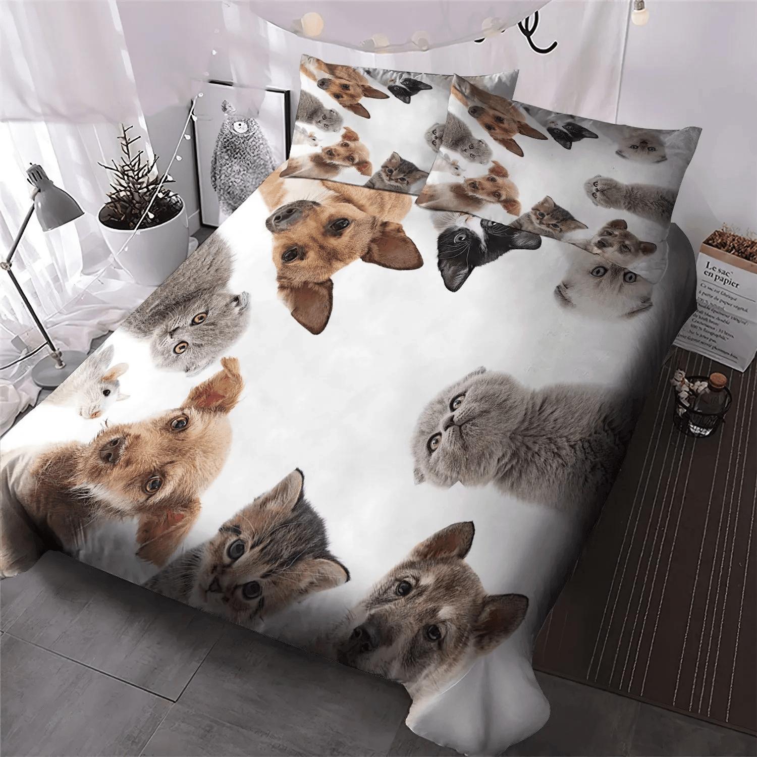 Animal Collection Bedding set, Doggo Queen Size Bedding Set, Racing Animal Soft Duvet Cover Set, Dog Cat Animals Bedding Set, Gifts for Cat