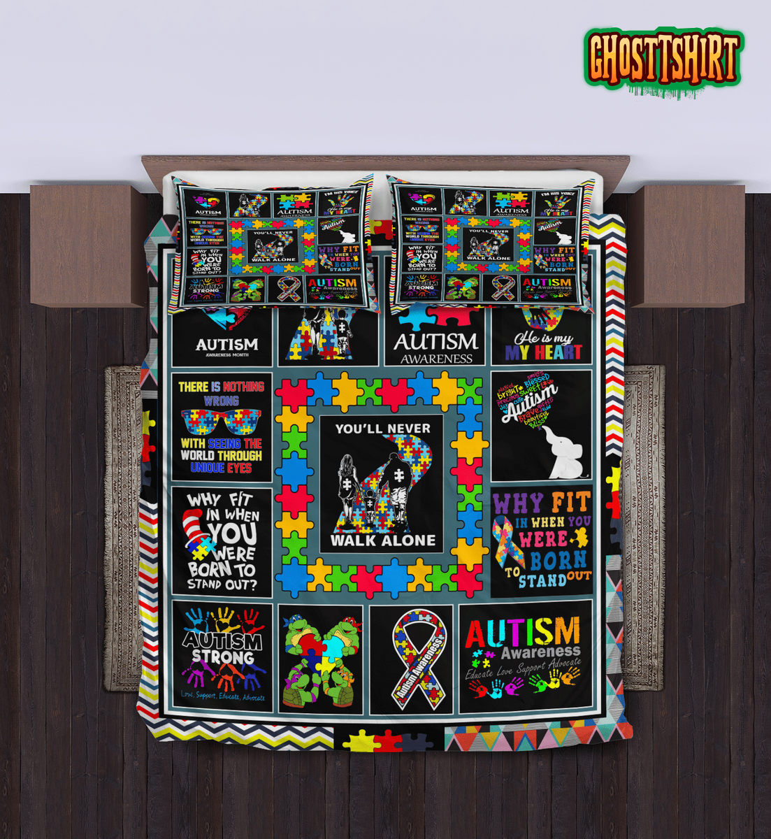 Autism You'll Never Walk Alone Bed Sheets Duvet Cover Bedding Set