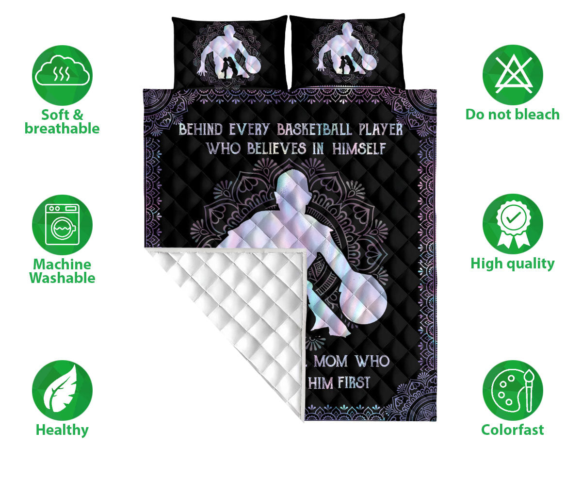 Basketball Quilt Set, Behind Basketball Player Mom Believe In Him Quilt Blanket With Pillowcases, Quilt Bedding Set