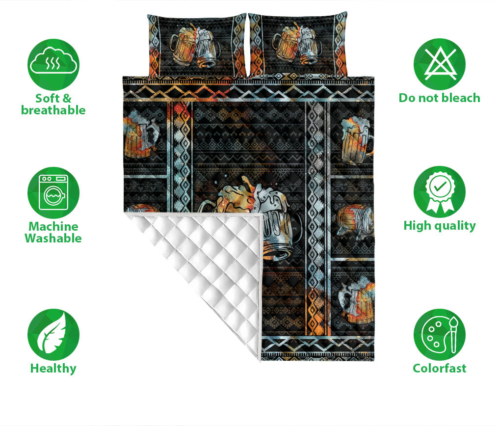 Beer Quilt Set, Dinker Beer Patchwork Black Quilt Blanket With Pillowcases, Quilt Bedding Set