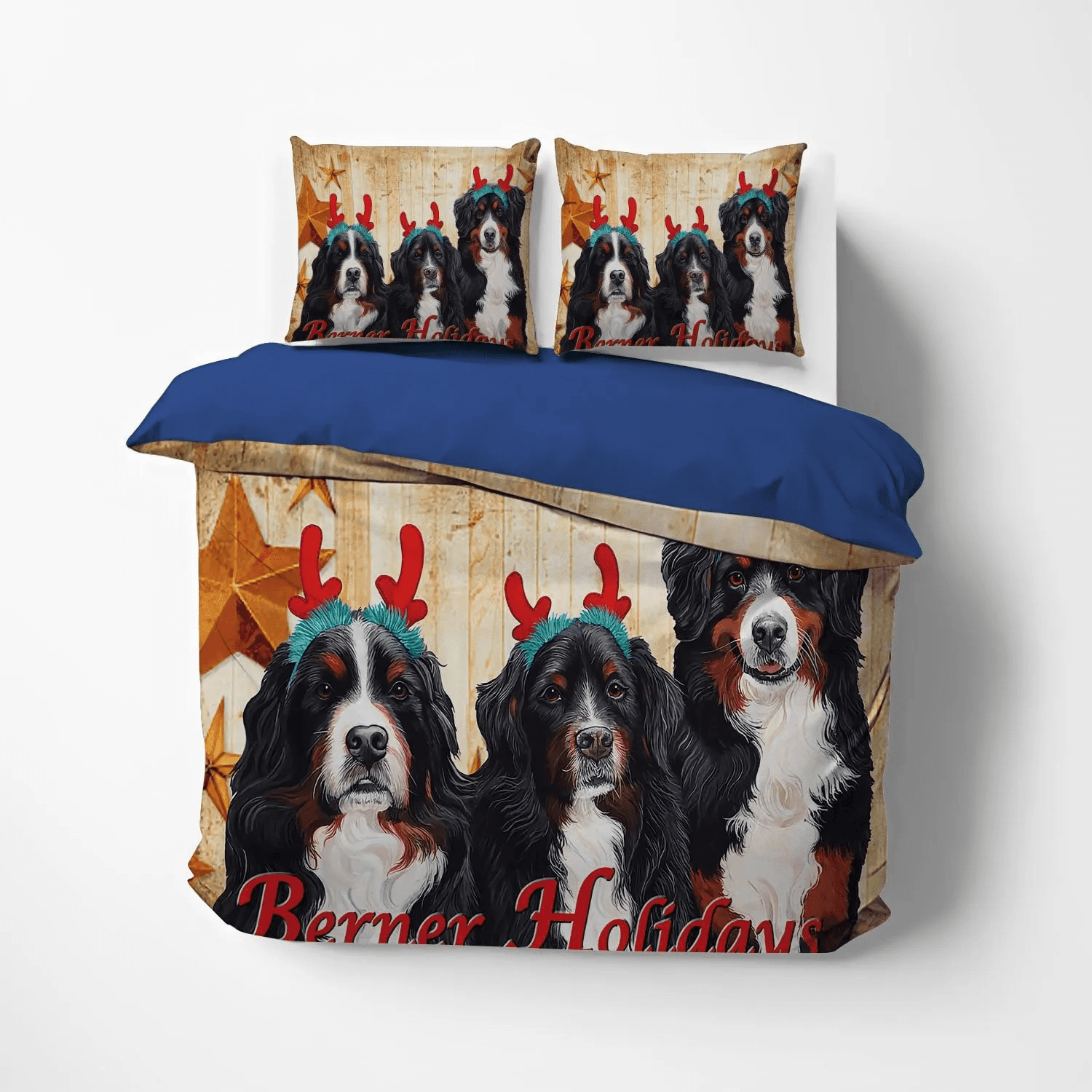 Bernese Mountain Dog Red Unique Soft Duvet Cover Set, Bernese Mountain Dog Bernese Holiday Bedding Set, Gifts for Dog