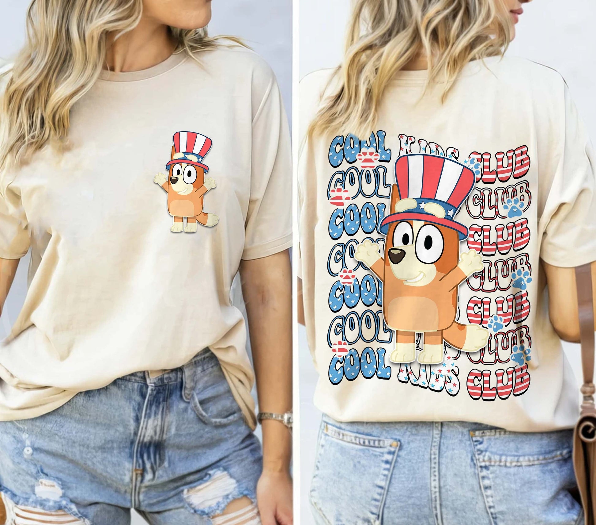 Bingo Cool Kid Club US Flag Double Sided Shirt, 4th July BlueyDad Bingo Heeler Shirt, Birthday Gift