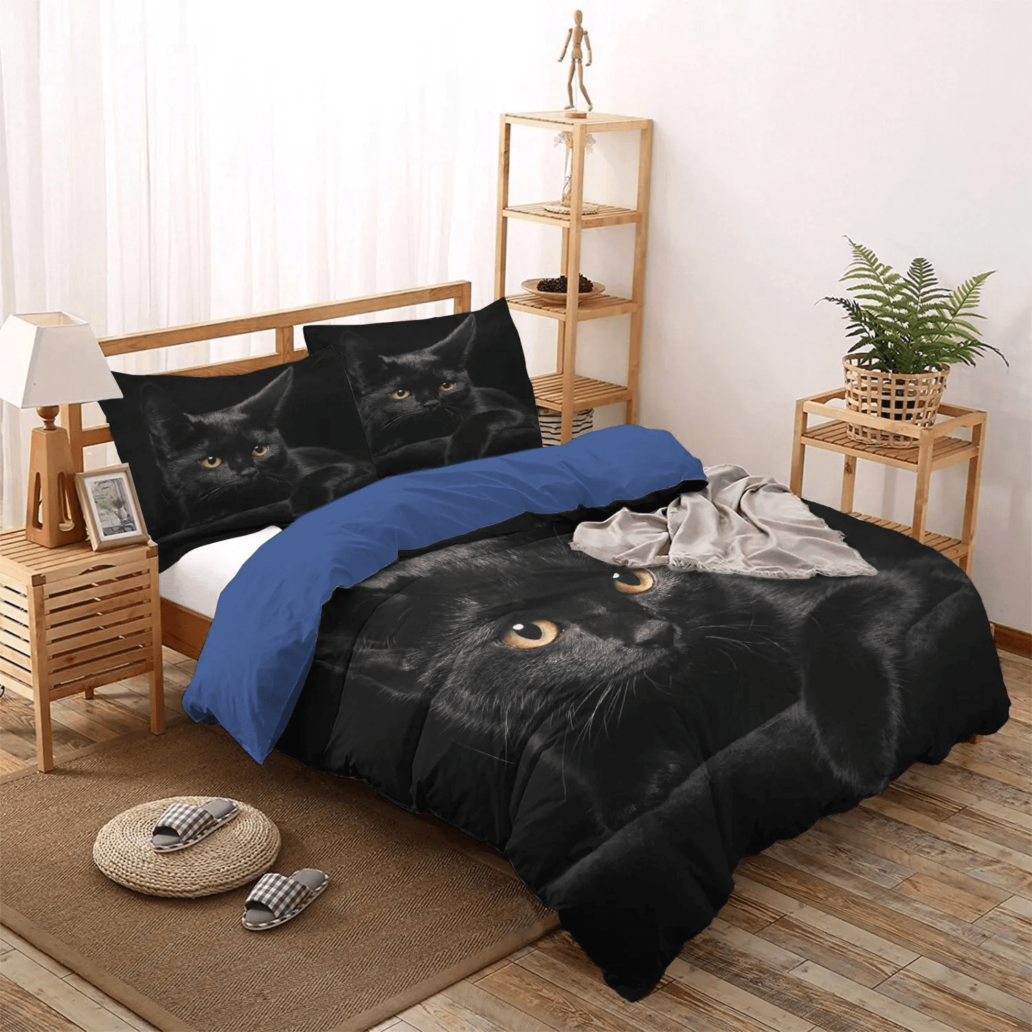 Black Cat Foals Soft Duvet Cover Set, Black Cat Nsn Transparent Bedding set, Gifts for Black Cat