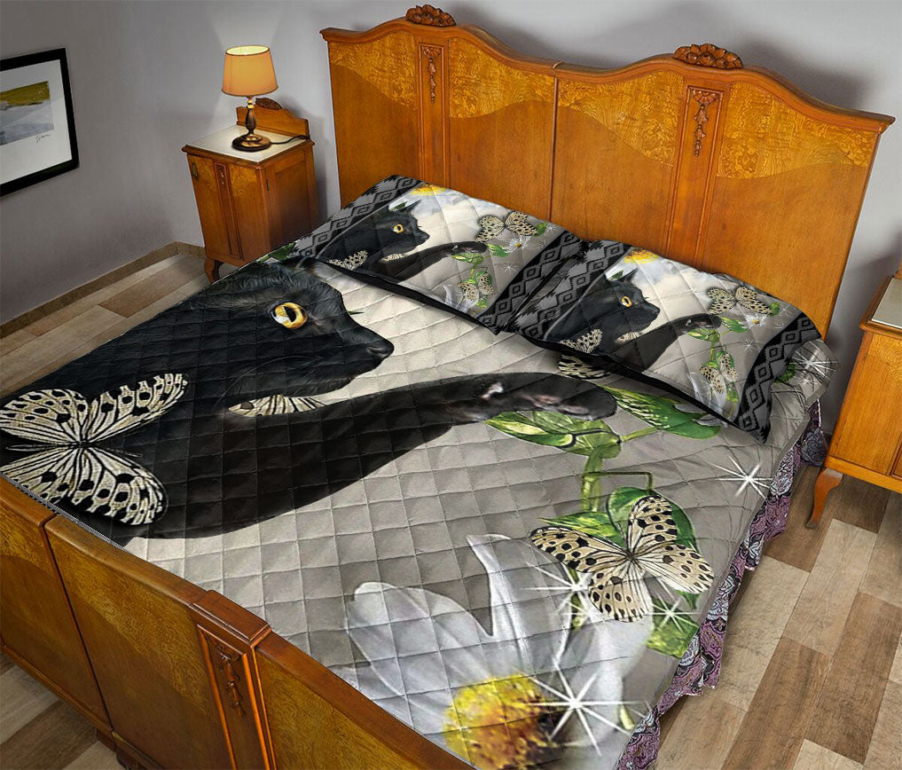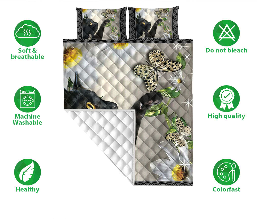 Black Cat,Cat Quilt Set, Black Cat Butterfly Flower Quilt Blanket With Pillowcases, Quilt Bedding Set