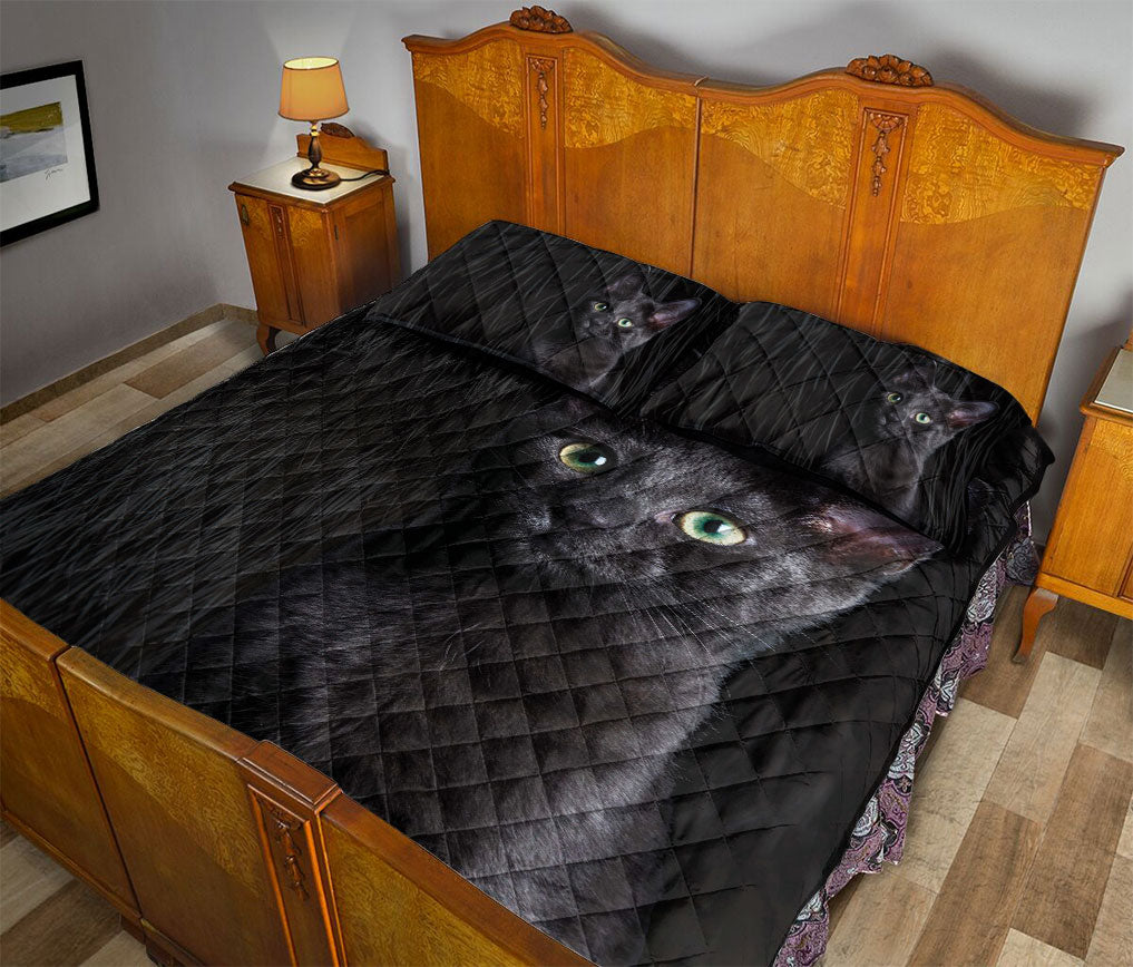 Black Cat,Cat Quilt Set, Black Cat Fur Quilt Blanket With Pillowcases, Quilt Bedding Set