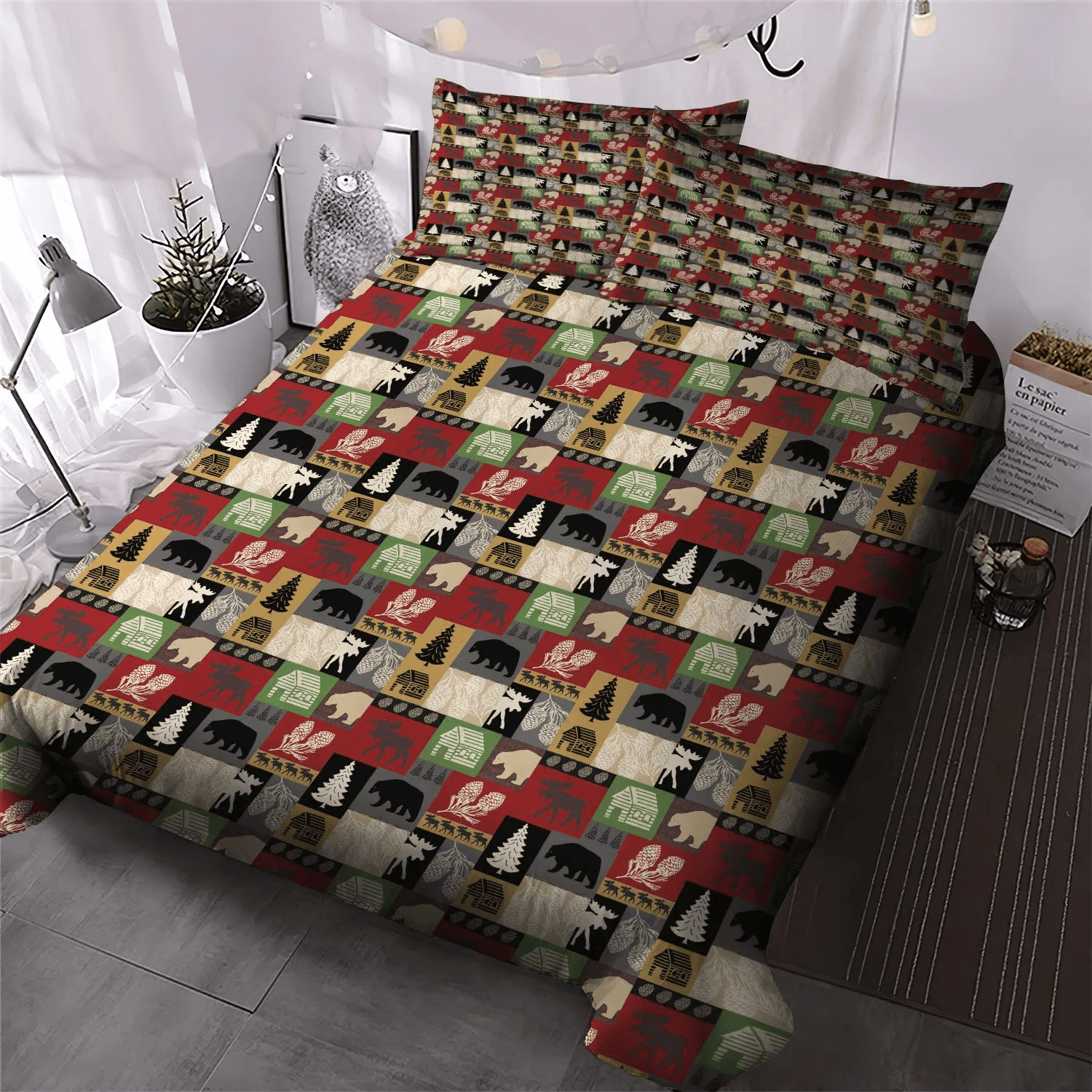 Blue Cat Lodge Soft Duvet Cover Set, Lodge Bedding set, Live Love Lodge King Size Bedding Set, Lodge Patchwork Bedding Set, Gifts for Lodge