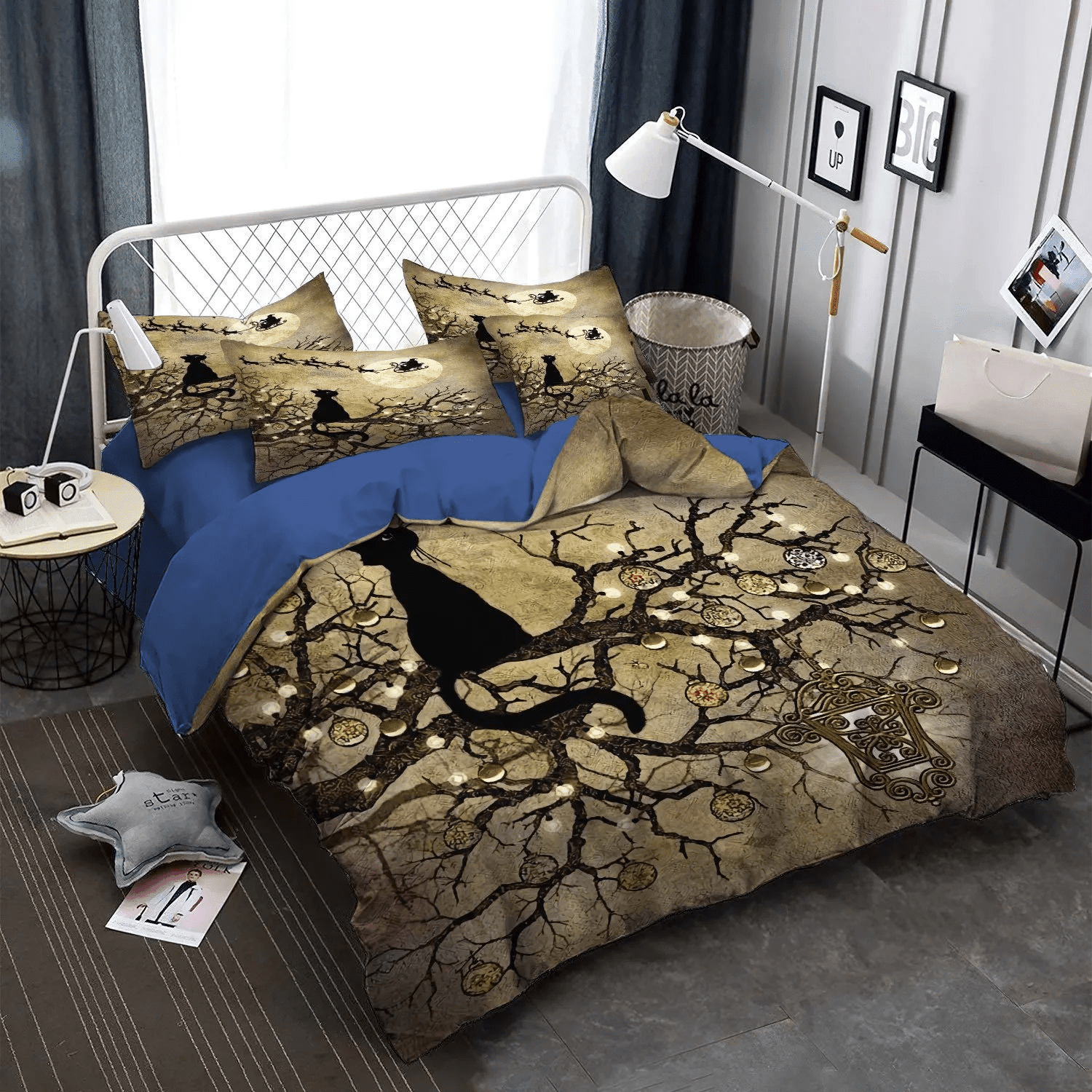 Blue Moon King Size Bedding Set, Cat Tracks Soft Duvet Cover Set, Goddammit Moon Moon Bedding set, Cat Moon Bedding Set, Gifts for Moon